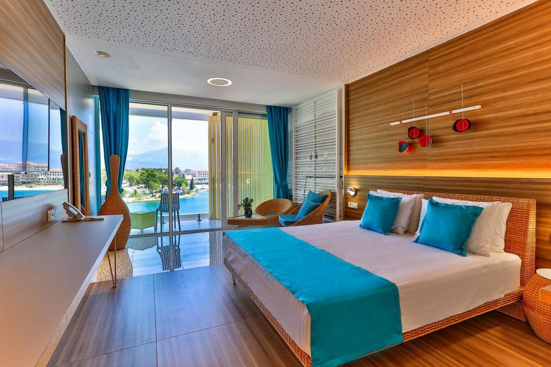 Хотелът разполага общо с 287 стаи разположени в два корпуса. Всички стаи са оборудвани с климатик, телевизор, телефон, баня с душ/вана, сешоар, мини бар, Wi-Fi - на цялата територия на хотелът, сейф. Почистване на стаите и смяна на кърпите - всеки ден, смяна на спалното бельо - 3 пъти в седмицата.