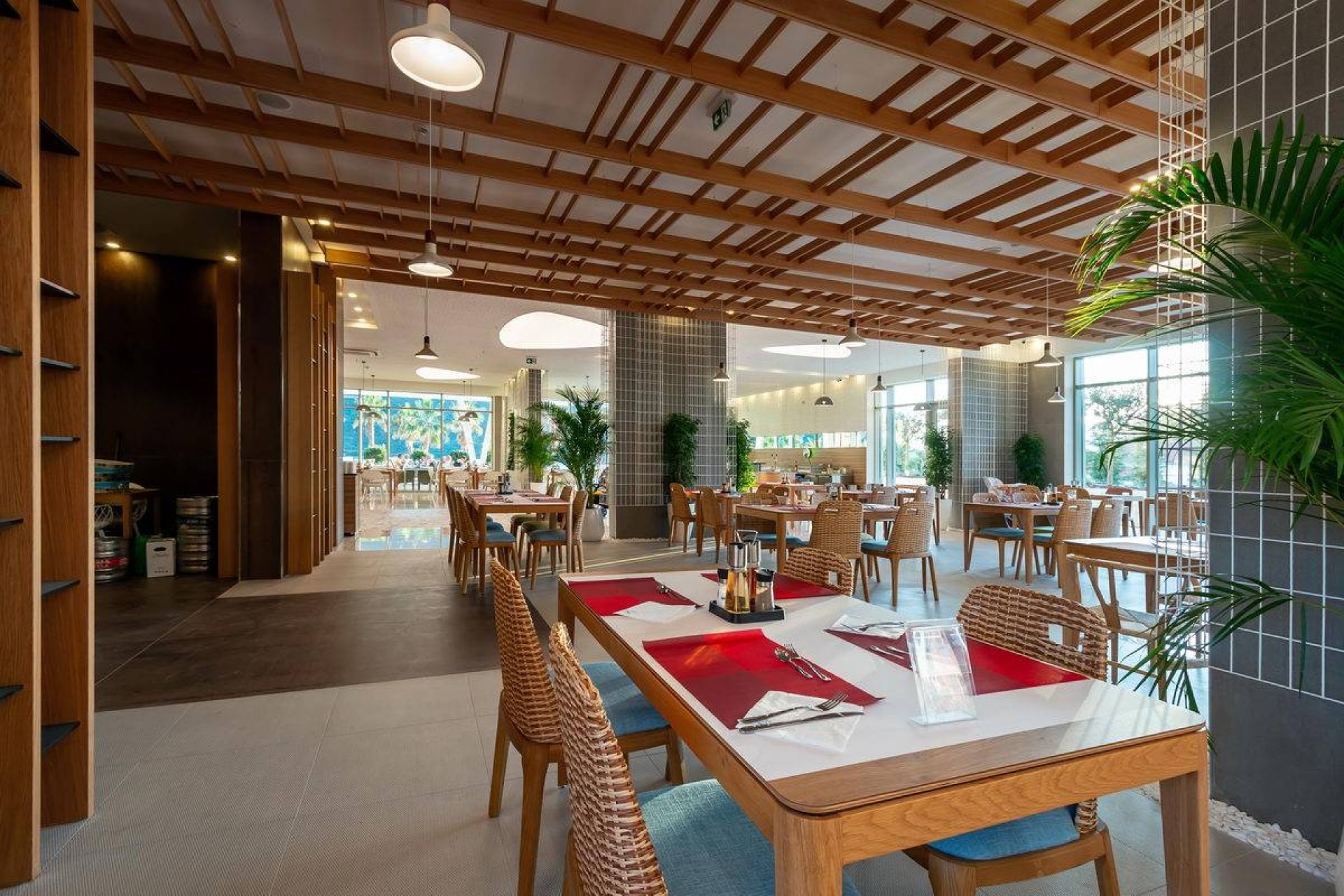 Основен ресторант, 3 бара - Lobby Bar и Beach Bar и Restaurant Bar, два открити басейни (единия е детски), един закрит басейн, СПА център.
