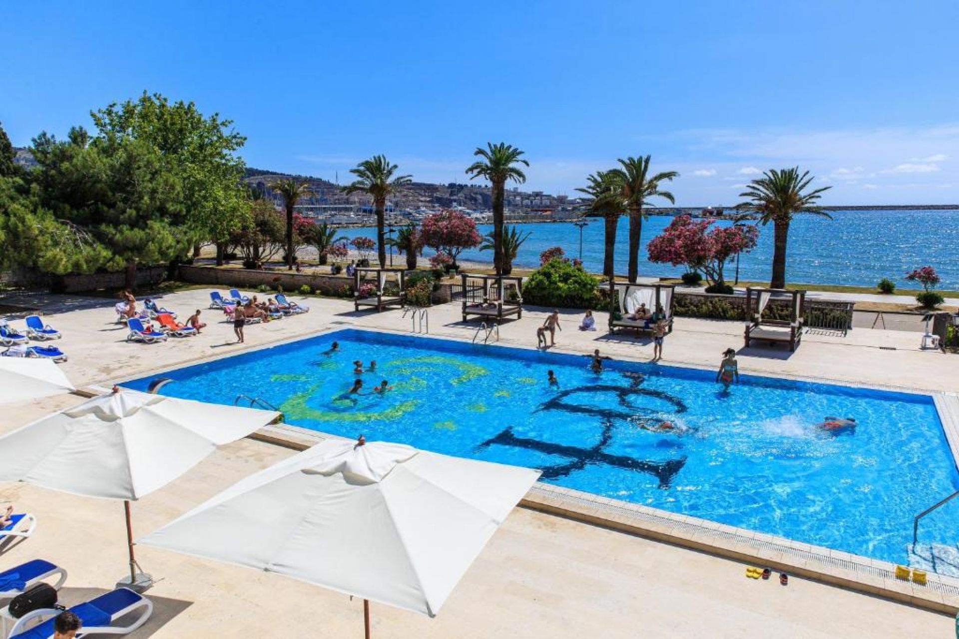 Собствен плаж, чадъри и шезлонги на плажа и при басейна - безплатно.