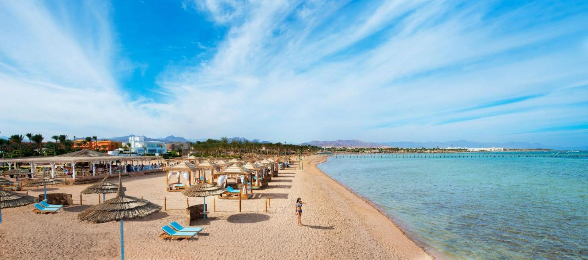 Собствен, пясъчен, коралов – 600 м; кей – 320 м. Чадъри и шезлонги на плажа и при басейна - безплатно. Плажни кърпи - безплатно.