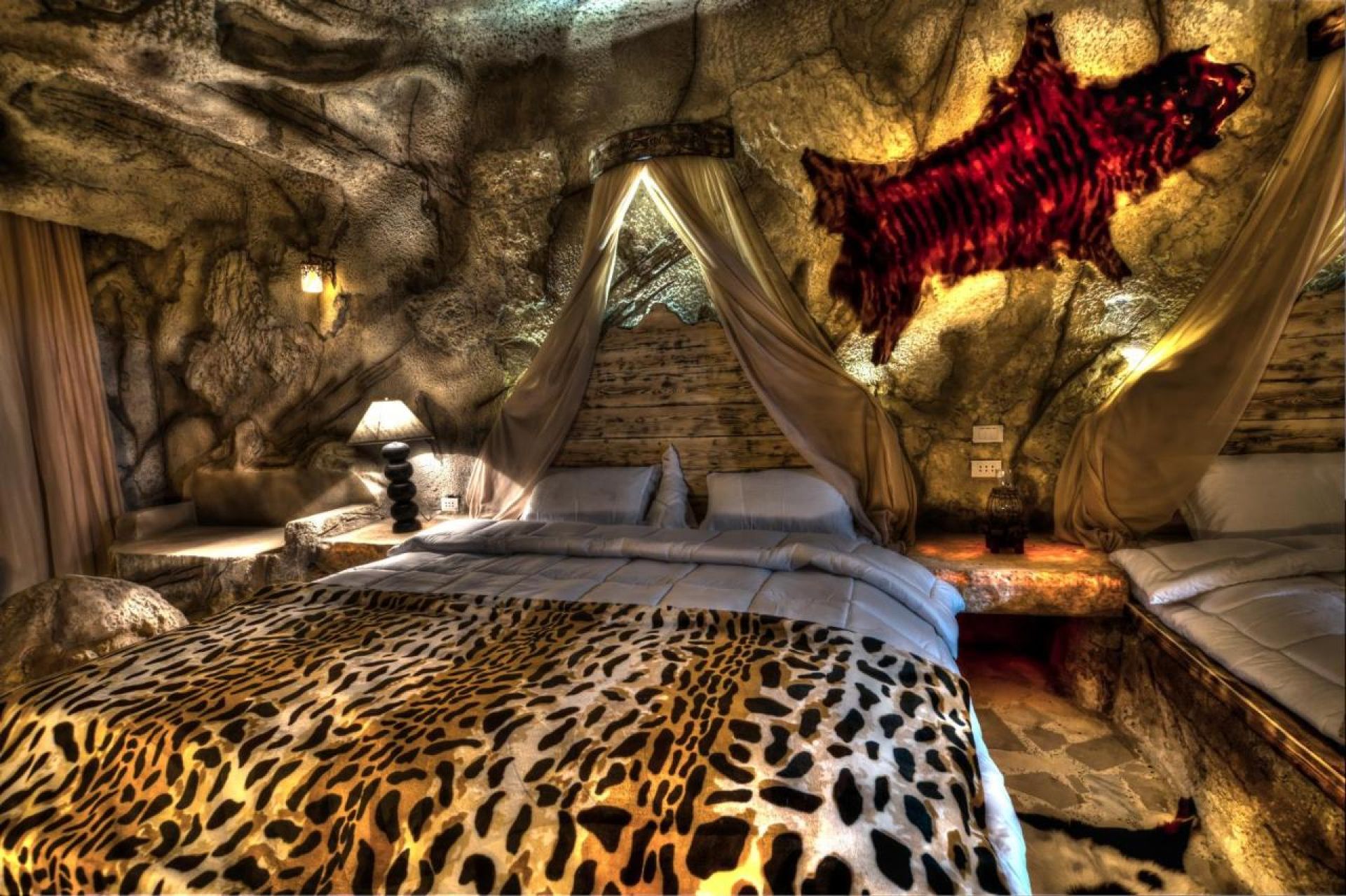 Всички стаи са в изцяло пещерен стил с висококачествено покритие и изработени от дърво и скала. Хотелът разполага с общо 380 стаи, разположени на 1 етаж (включително приземен) в основната сграда и на 4 етажа в странични сгради (включително приземен), от които 238 STANDARD ROOMS (78 с изглед градина – 40 m2, 145 с изглед басейн – 40 m2; 15 изглед море - 40 m2), 99 DELUXE ROOM POOL VIEW (55 m2), 6 DELUXE ROOM SEA VIEW (55 m2), 60 ROYAL CAVES SWIM UP. Всички стаи са оборудвани с климатик, телевизор, телефон, баня с душ/вана, сешоар, минибар (ежедневно зареждане на вода), сет за чай/кафе, балкон/тераса. Почистване на стаите и смяна на кърпите - всеки ден, смяна на спално бельо – 2 пъти в седмицата.