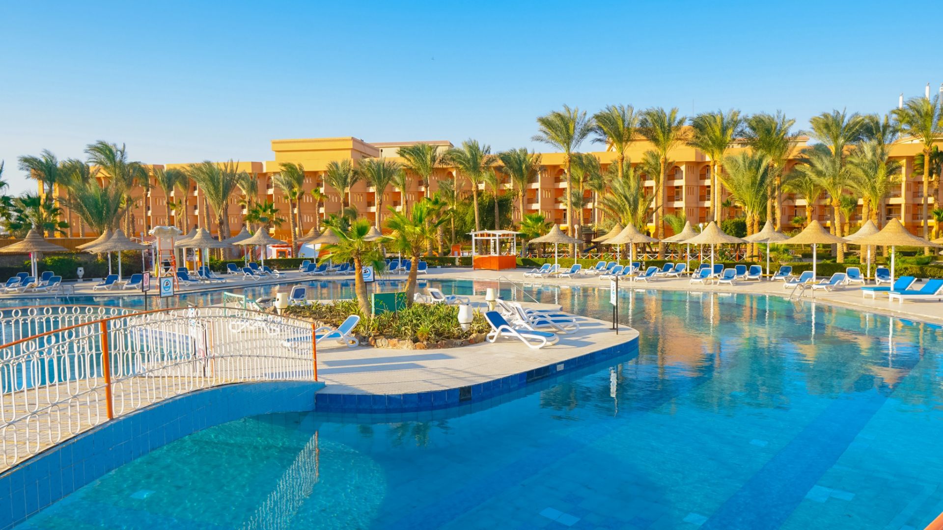 Намира се на 3 км. от летище Хургада, на 7 км от центъра на Хургада, на брега на морето.