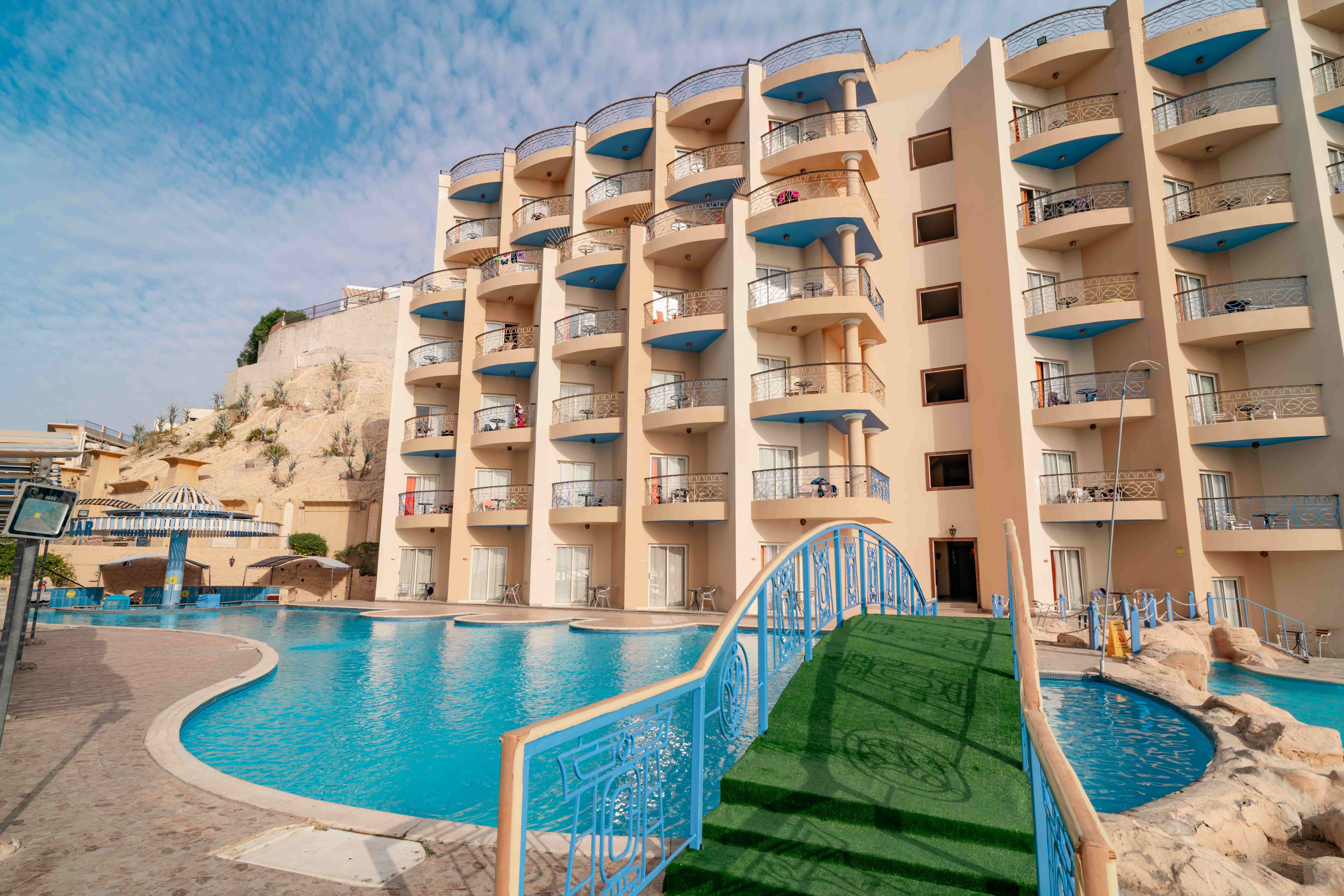 Намира се на 8 км. от летище Хургада, на 3 км. от центъра на Хургада, на брега на морето. Построен през 2004 г., последно реновиран през 2017 г.