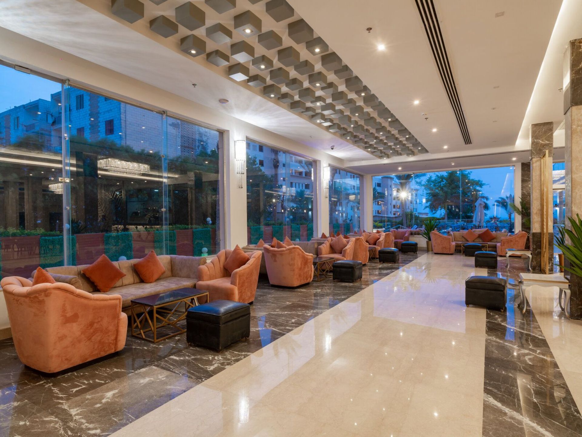 Основен ресторант, 2 а - ла - карт ресторанта (“Cleopatra” - рибен, “Memphis“ - ориенталска кухня, италианска кухня, китайска кухня), 4 бара, 4 открити басейна (отопляеми през зимния сезон), СПА център, магазини, аквапарк (4 пързалки за възрастни, 3 за деца от 10-12 г. и от 14 до 17 г.).