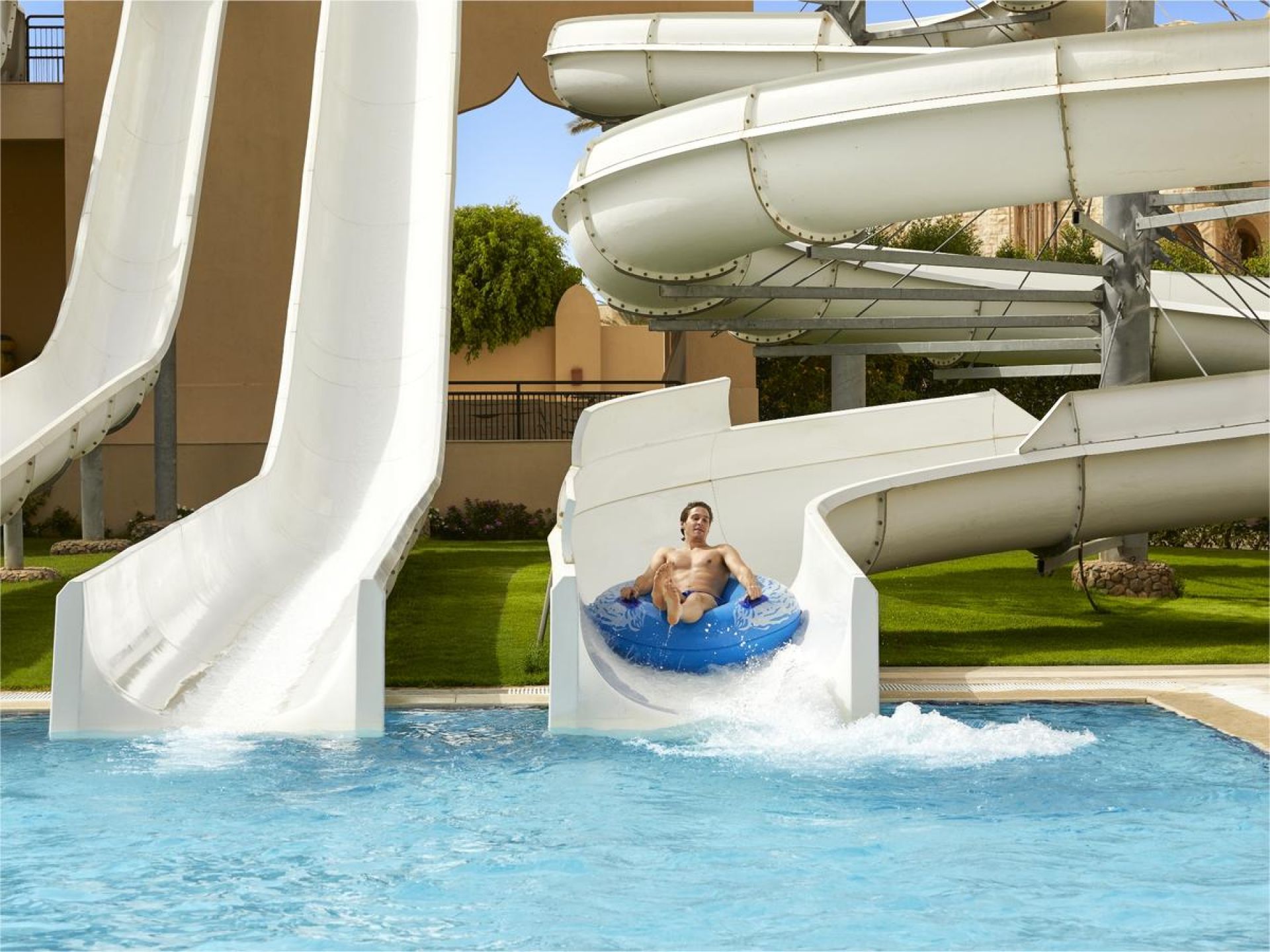 Хотелът разполага с общо 715 стаи и апартаменти, от които 113 Standard Rooms (24 m2, Pool or Garden View), 143 Superior Rooms (34 m2, Garden View), 140 Deluxe Rooms (45 m2, Pool or Promenade view), 153 Family Suites (55 m2, Pool or Garden view), 151 Family Junior Suites (68 m2, Pool or Garden view), 15 Aqua Suites (70 m2, Pool or Promenade view). Всички стаи са оборудвани с климатик, телефон, телевизор, баня с вана/душ, сешоар, минибар (вода и безалкохолни напитки - безплатно), балкон, Wi-fi. Почистване на стаите и смяна на кърпи - всеки ден, смяна на спално бельо – 2 пъти в седмицата.