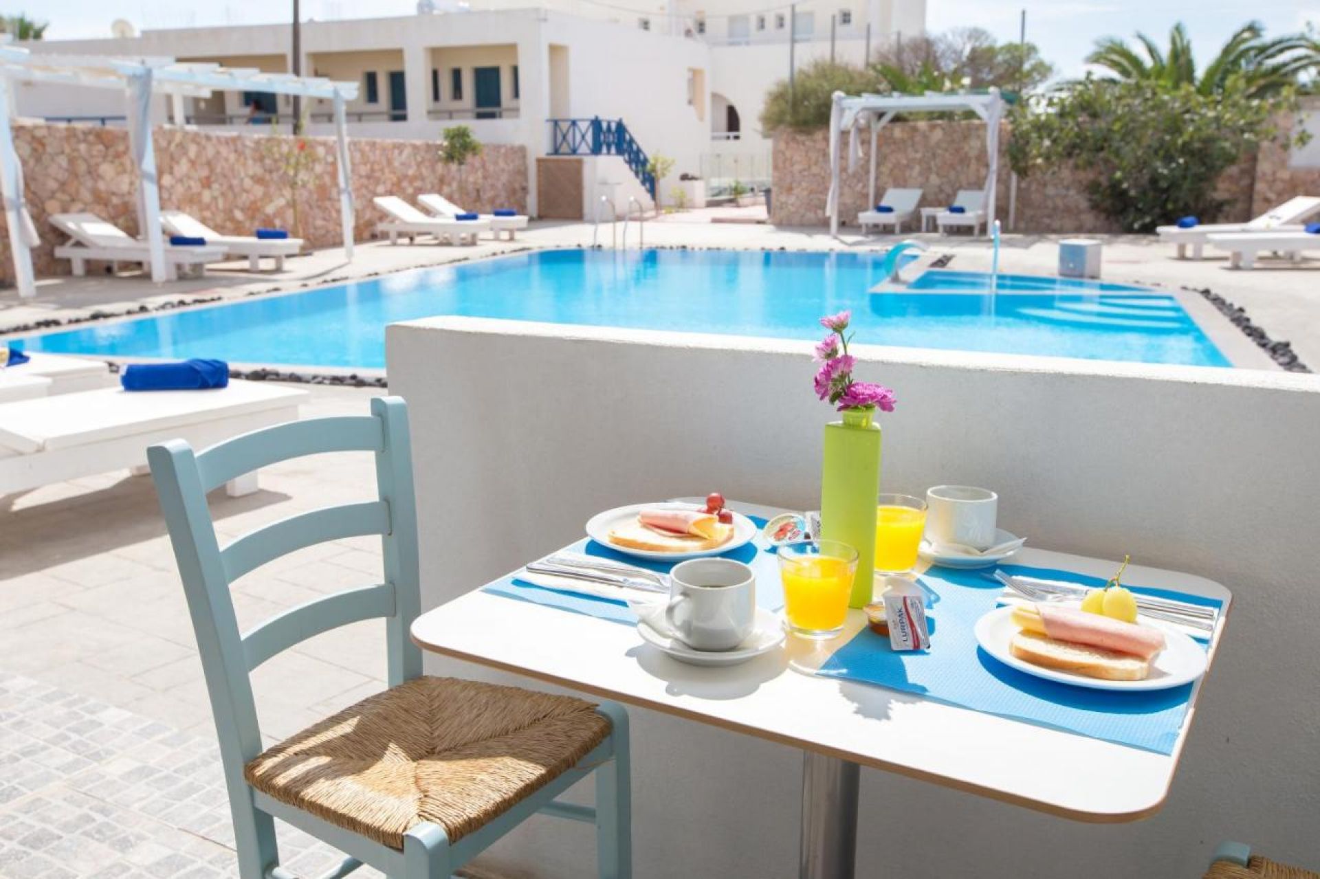 Хотелът се намира в района на Периса-Периволос, само на няколко крачки от най-хубавият пясъчен плаж на острова. Периса е 800 метра, столицата Фира на 10 км, централното пристанище Атиниос е на 7 км. Автобусна спирка на градски транспорт има на 1 минута от хотела. За всички трансфери и екскурзии, качването на туристи става директно от хотела !