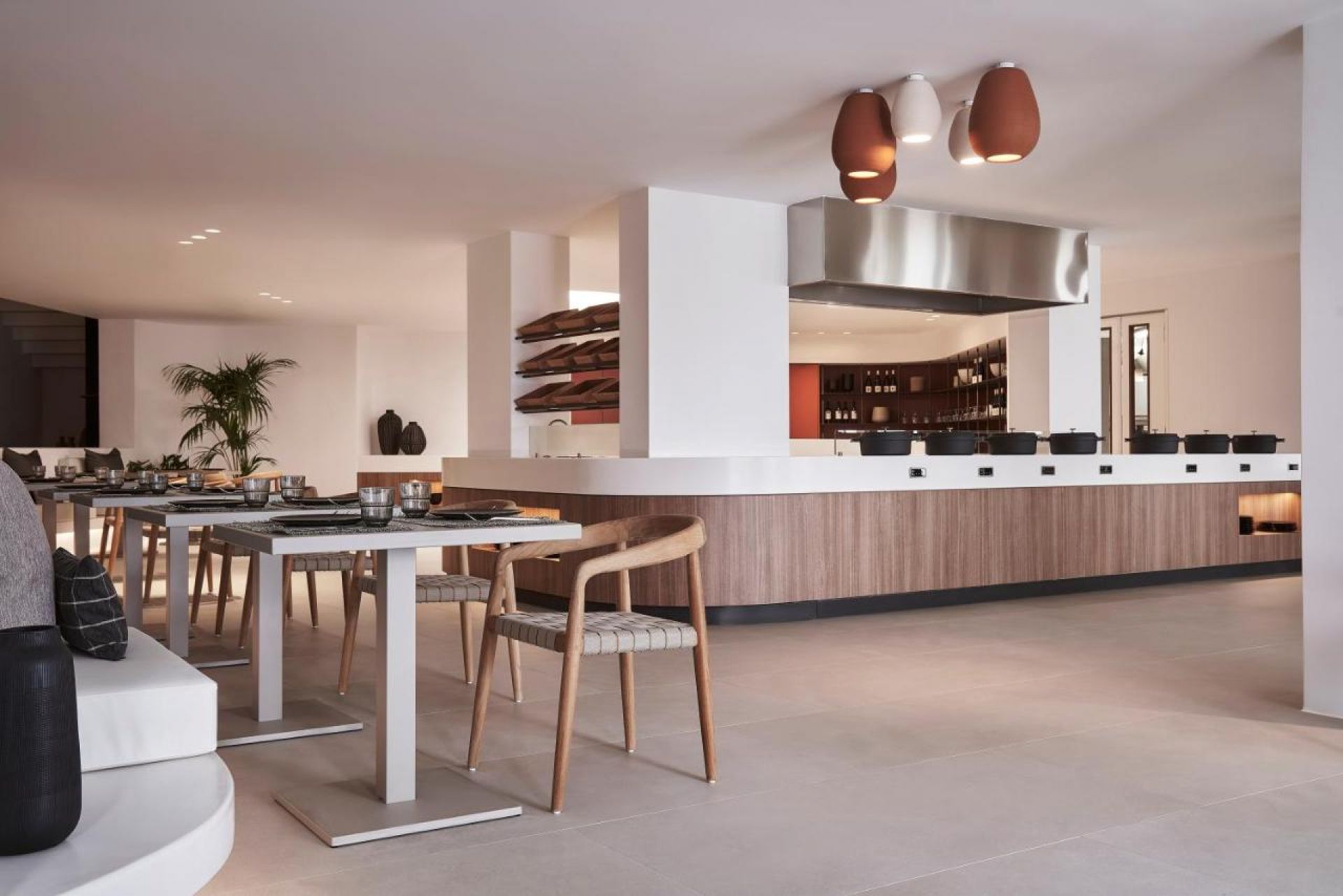 Хотелът разполага с ресторант до басейна с уникални гледки, предлага гръцка и средиземноморска кухня, бар до басейна, фитнес център и СПА.