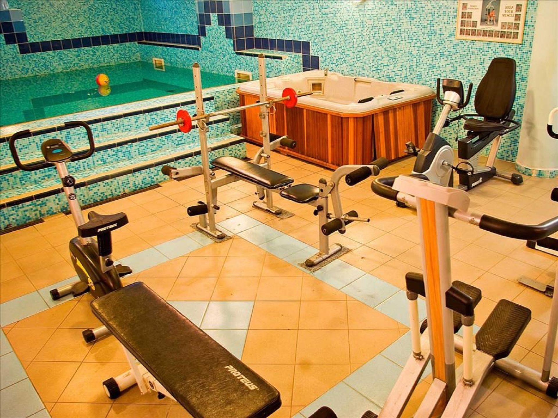 Външен и вътрешен басейн. Фитнес зала безплатно. Джакузи и сауна платени. СПА-услуги се предлагат в близкия хотел Mediterranean Village.