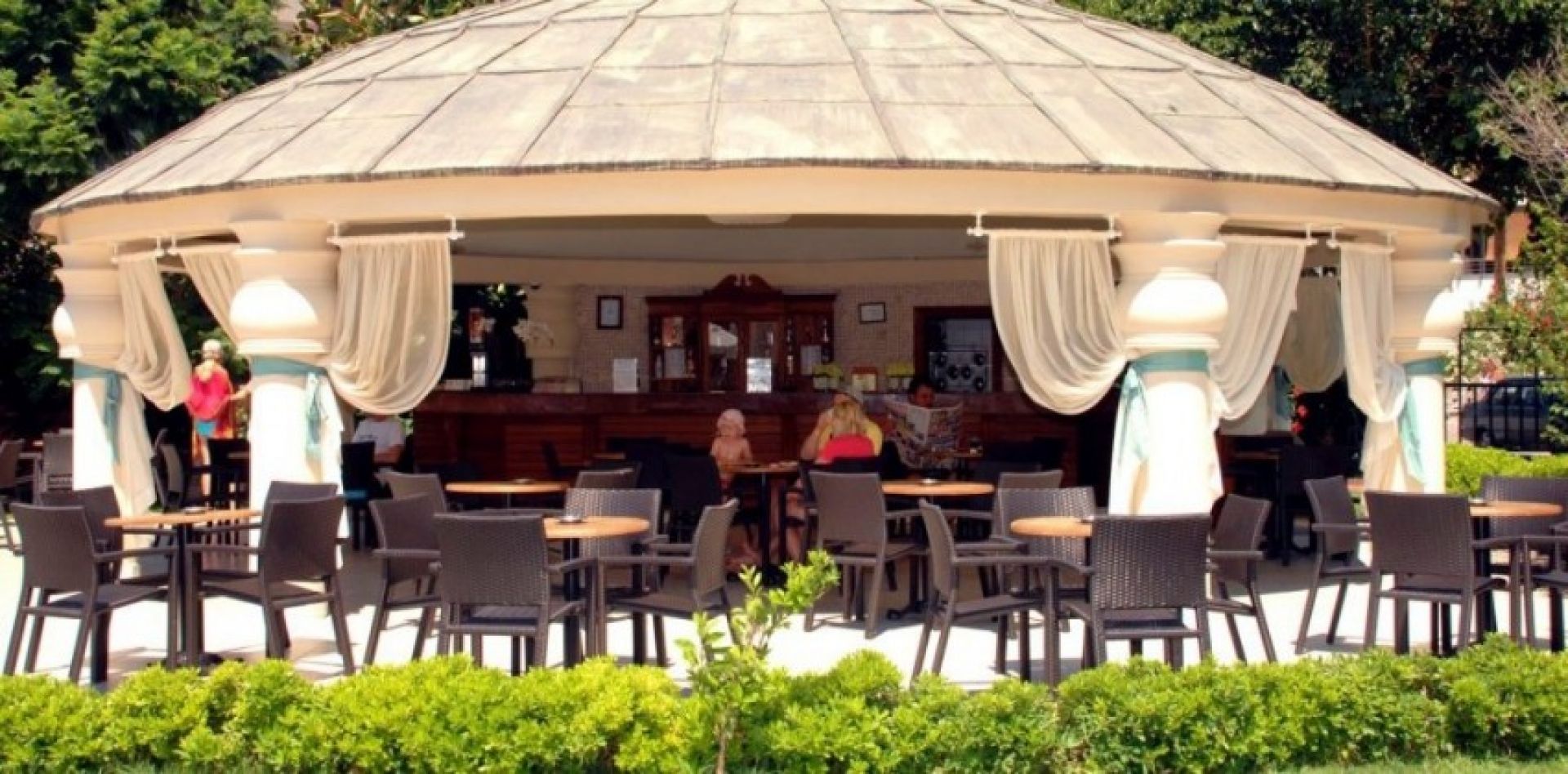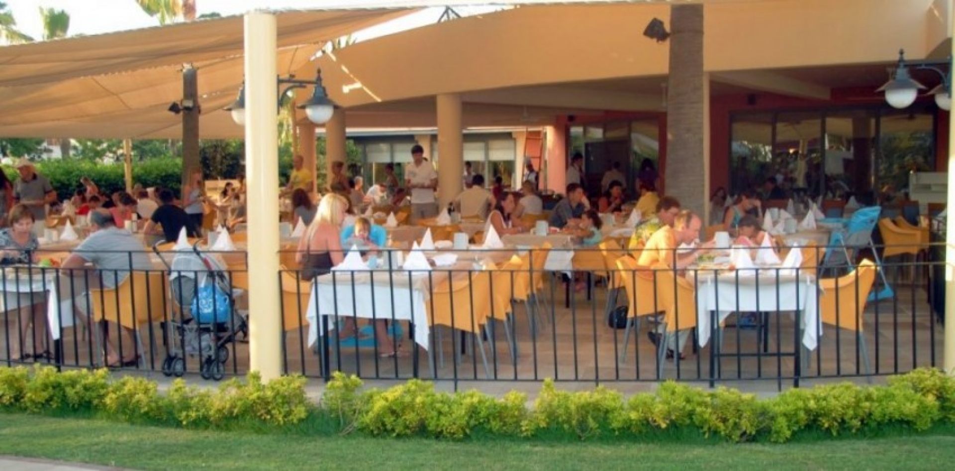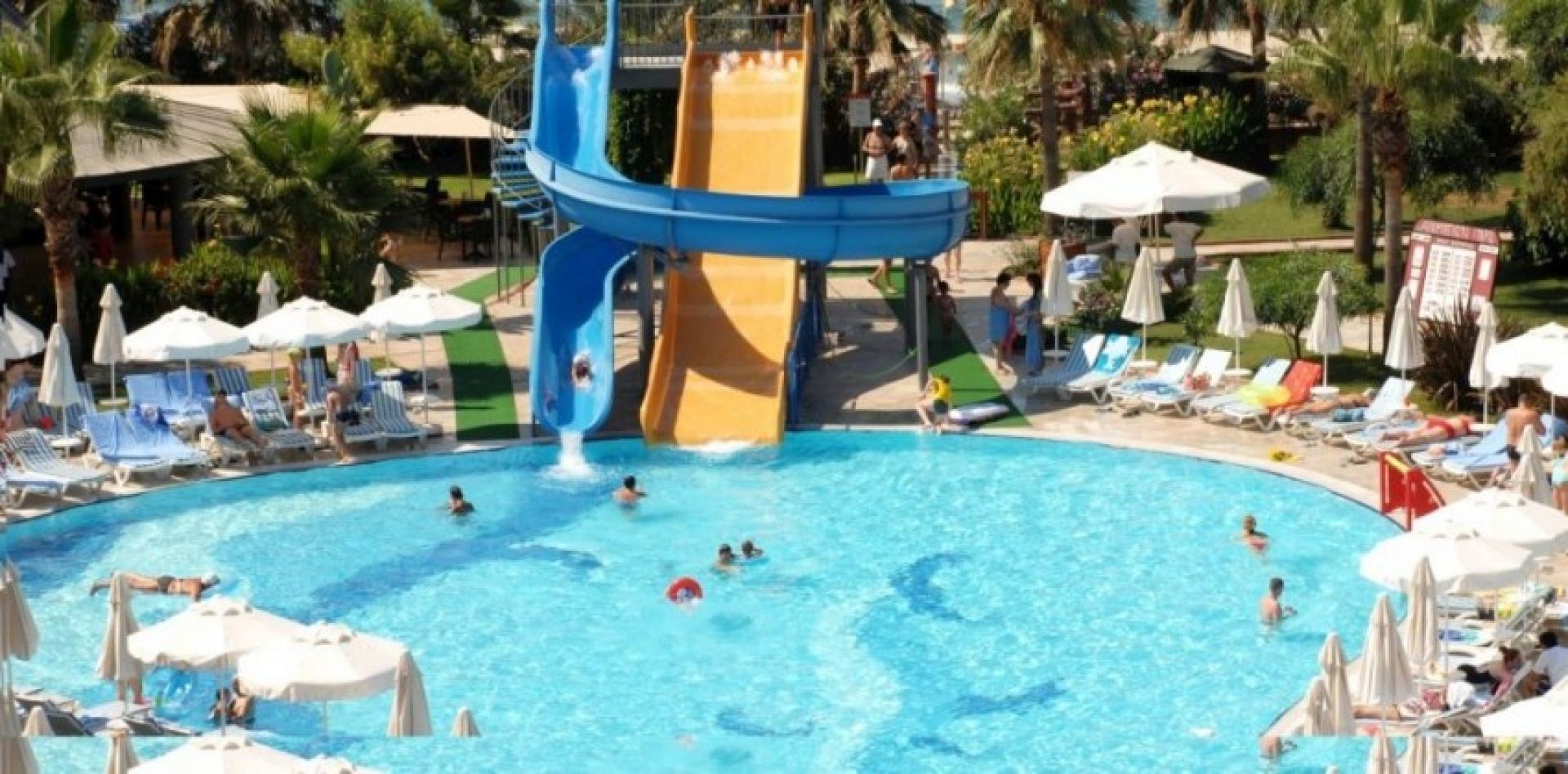 Хотелът разполага с основен ресторант, а-ла-карт ресторант, 3 бара, дискотека, плувен басейн, вътрешен плувен басейн, детски басейн, водни пързалки, СПА център,фитнес, турска баня, масажи, тенис корт, баскетбол, волейбол, амфитеатър, анимация, игрална зала, конферентна зала, паркинг, доктор, водни спортове. Безплатни услуги: турска баня, сауна, фитнес, всички дейности от анимационната програма, дискотека, тенис на маса, дартс, волейбол, билярд, водна гимнастика, аеробика, тенис корт. Платени услуги: масажи и други козметични процедури, всички водни спортове, игрална зала. За децата: мини клуб /4-12г./, детски басейн, анимация.