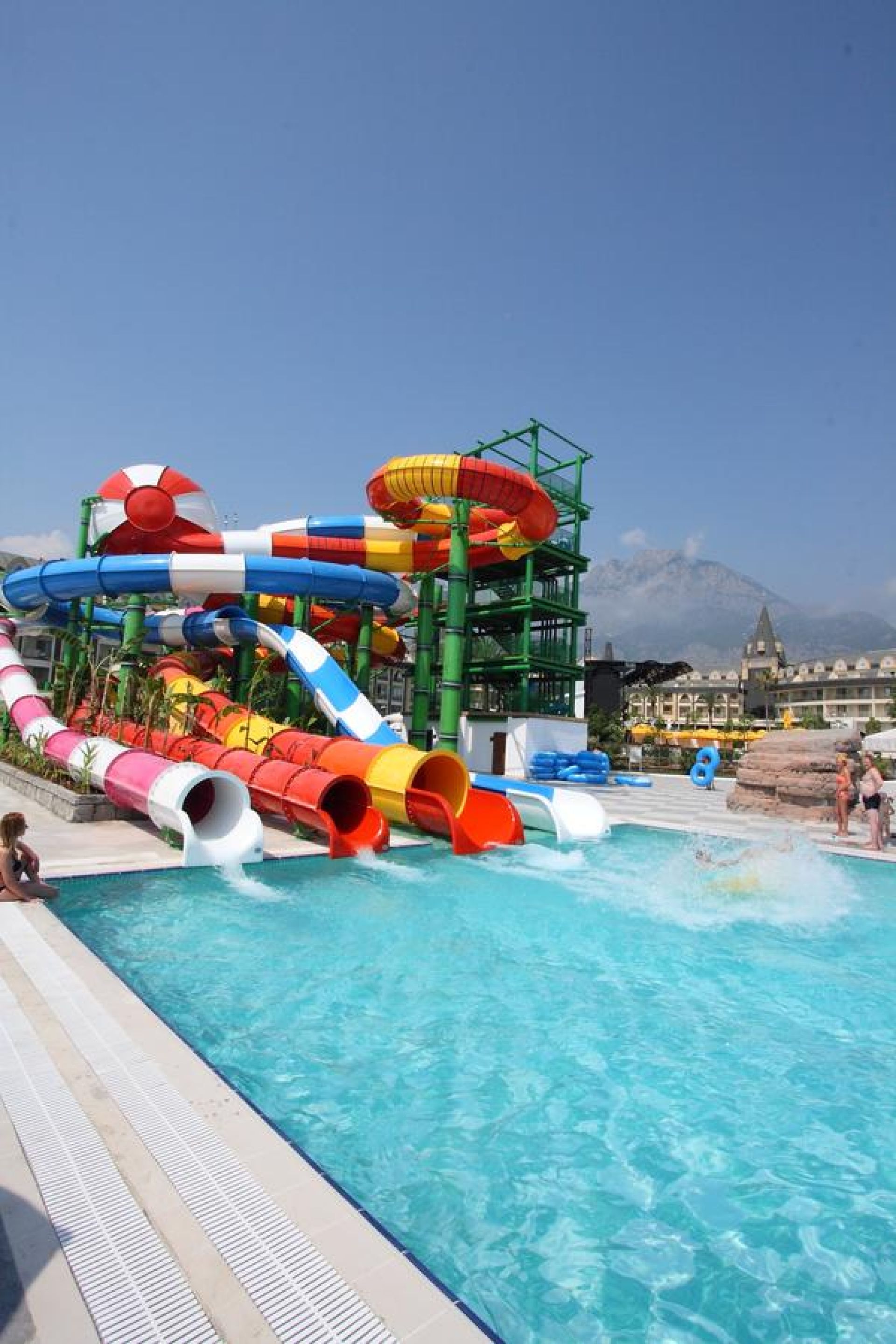 Основен ресторант, 3 а-ла карт ресторанта (италиански, турски, рибен - с предварителна резервация срещу заплащане), снек бар (пица, пиде, гюзлеме), 4 бара (1 от които на плажа), сладкарница, 5 открити и 1 закрит басейн, 7 водни пързалки, СПА център, открита дискотека, кино зала, паркинг, конферентна зала.
