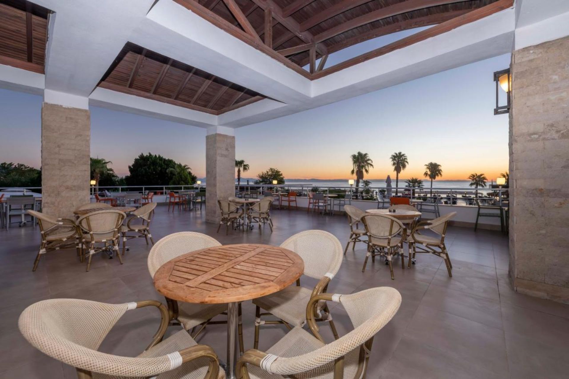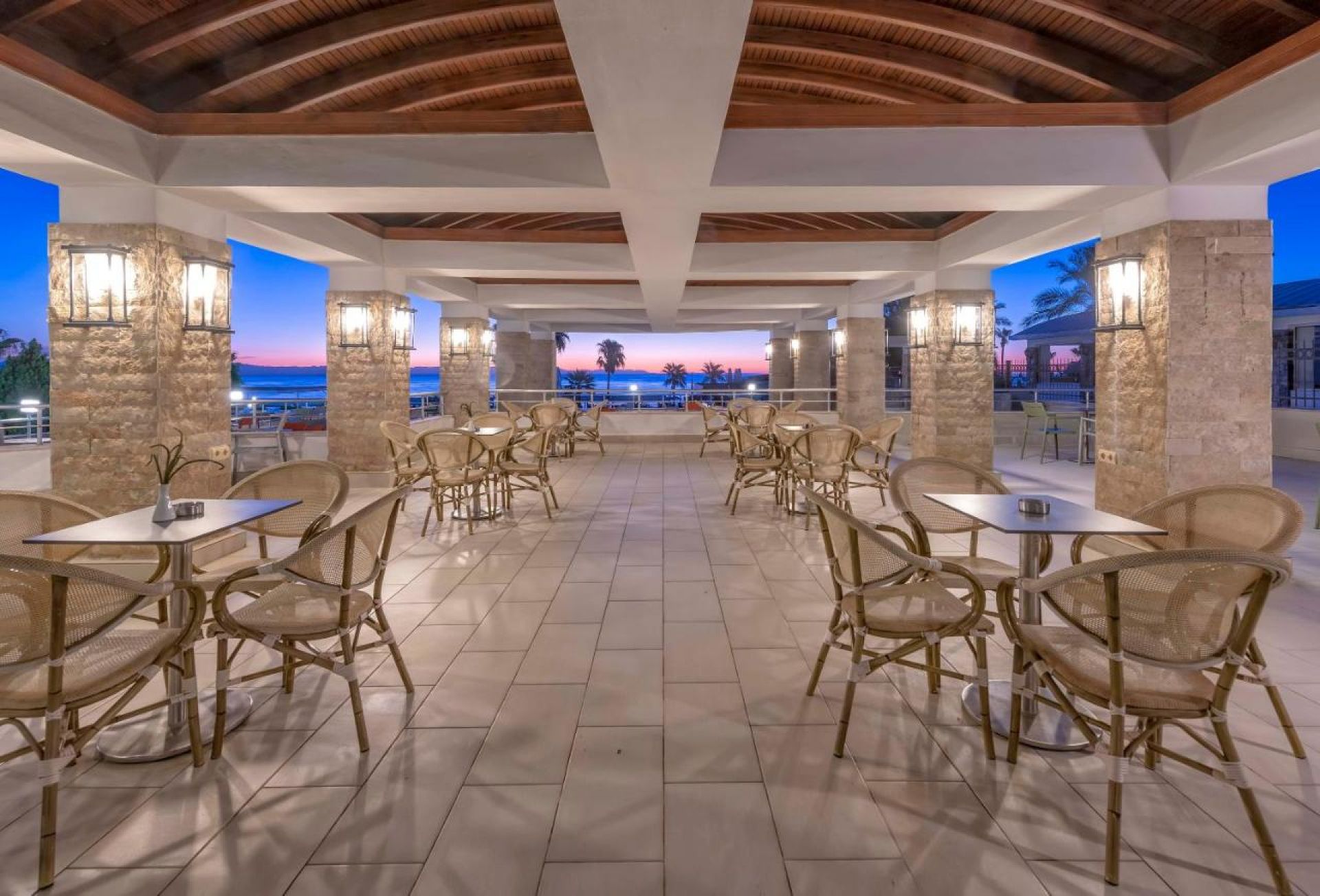 Основен ресторант, а-ла-карт ресторанта (рибен), 4 бара, дискотека, 4 октрити басейна, 2 водни пързалки, СПА център, 2 конферентни зали. Безплатни услуги: Сауна, турска баня, фитнес. Платени услеги: Масажи, пилинг, билярд, водни спортове, WiFi интернет За децата: детски басейна, мини клуб (4-11г.), тийн клуб (12-16г.), мини диско.