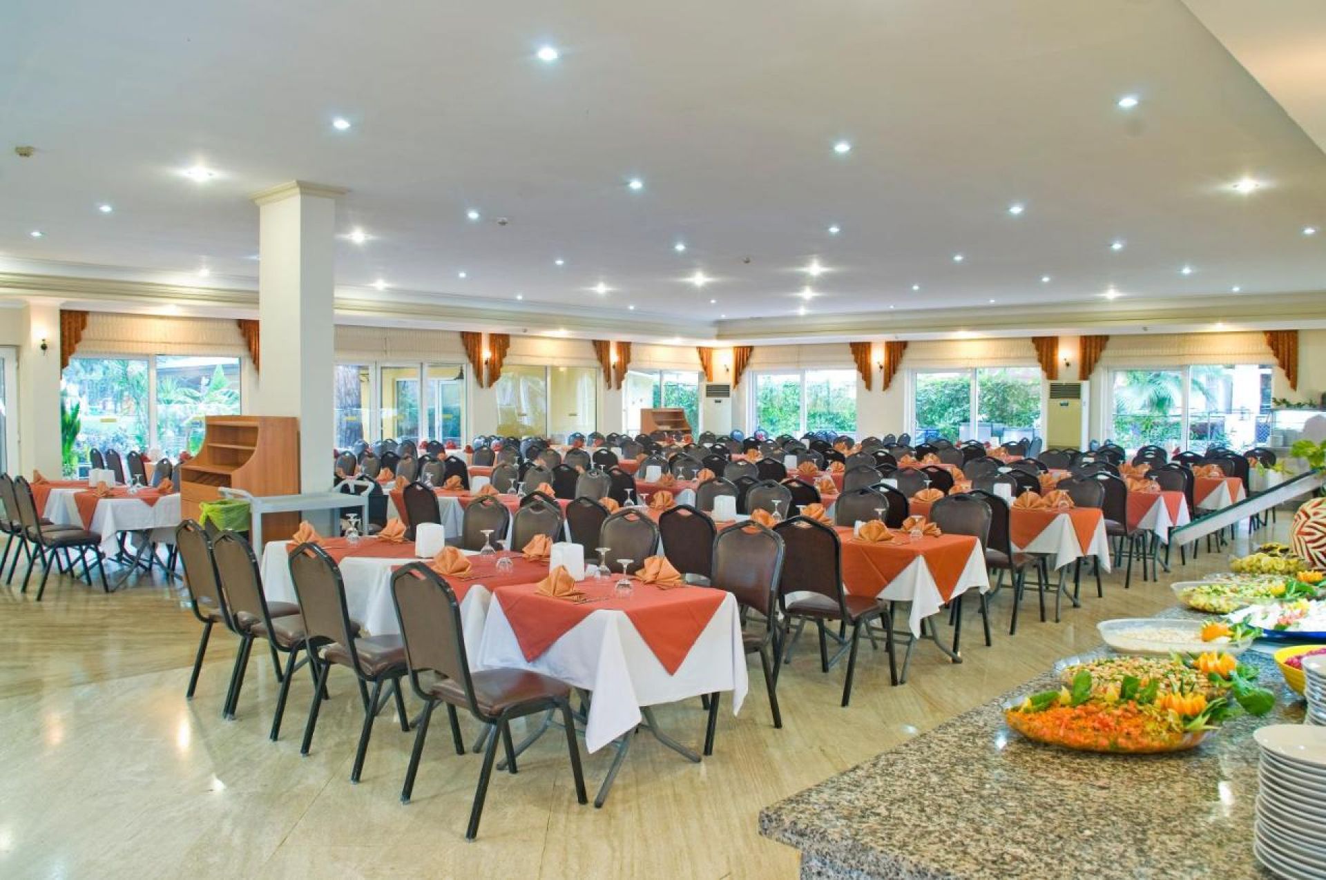 Основен ресторант, ресторант a-la-carte (рибен, с предварителна резервация, платено), 6 бара, открит басейн, 2 водни пързалки, лекар, фризьорски салон,
