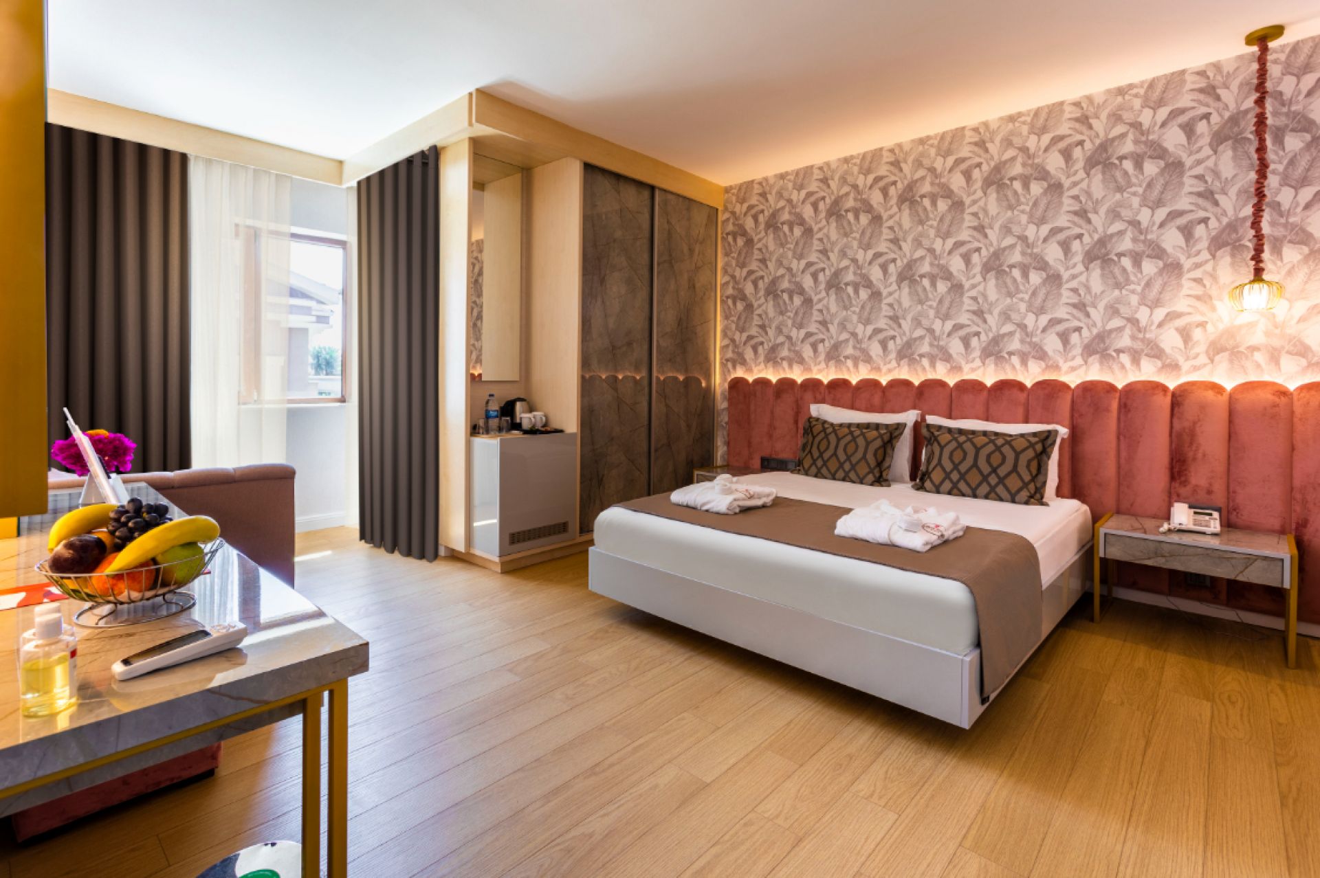 Всички стаи са оборудвани с климатик, телевизор, телефон, баня с душ, сешоар, минибар, сейф, балкон, Wi-Fi. Почистване на стаите и смяна на кърпите - всеки ден, смяна на спално бельо – 3 пъти в седмицата.