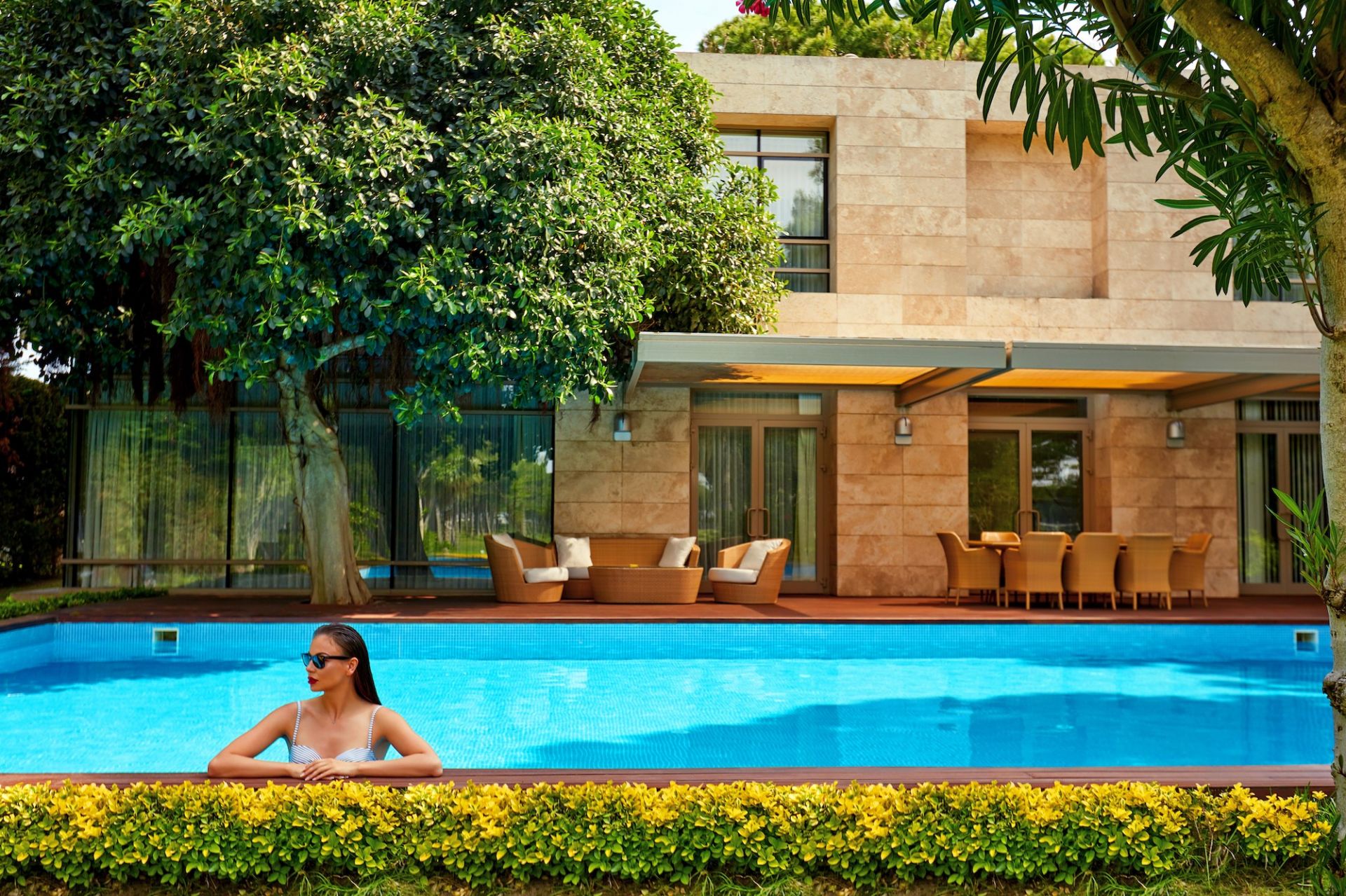 Стаи Villas с изглед градина: 52 Garden Villa (2 спални, 1 хол, 2 бани - 86 м2), 30 Pool Villa (2 спални, 1 хол, 2 бани - 86 м2), 10 Deluxe Villas (с изглед градина - 3 спални, хол, 4 бани, тераса с маса и мека мебел, бебешко кошче, частен басейн с морска и прясна вода с опции за отопление, хамак, чадъри и шезлонги - 200 м2), 1 Serenity Villa (3 спални, хол, 3 бани, тераса с маса и мека мебел, частен басейн с морска и прясна вода с опции за отопление, шезлонги - 200 м2), 1 Queen Villa ( 4 спални, 1 хол, 3 бани, частна тераса с маса и мека мебел, частен басейн с морска и прясна вода с опции за отопление, хамак, чадъри и шезлонги - 250 м2 ), 1 King Villa (4 спални, 1 хол, 4 бани, частна тераса с джакузи, маса и мека мебел, частен басейн с морска и прясна вода с опции за отопление, хамак, чадъри и шезлонги - 250 м2 ), 1 VIP Villa (4 спални, хол, кухня, СПА зона – сауна, парна баня, джакузи, 2 масажни легла, 1 бягаща пътека, 5 бани, частна тераса с маса и мека мебел, частен басейн с морска и прясна вода с опции за отопление, хамак, чадъри и шезлонги - 400 м2), 1 Presidential Vila (6 спални, хол, 2 стаи за персонал, частна професионална кухня, голяма работна стая, СПА зона – фитнес, сауна, парна баня, джакузи, стая за масаж, билярдна зала, киносалон, гардеробна, 7 бани, частна тераса с маса и мека мебел, частен басейн с морска и прясна вода с опции за отопление, хамак, чадъри и шезлонги, сушилник за пране - 400 м2 ).