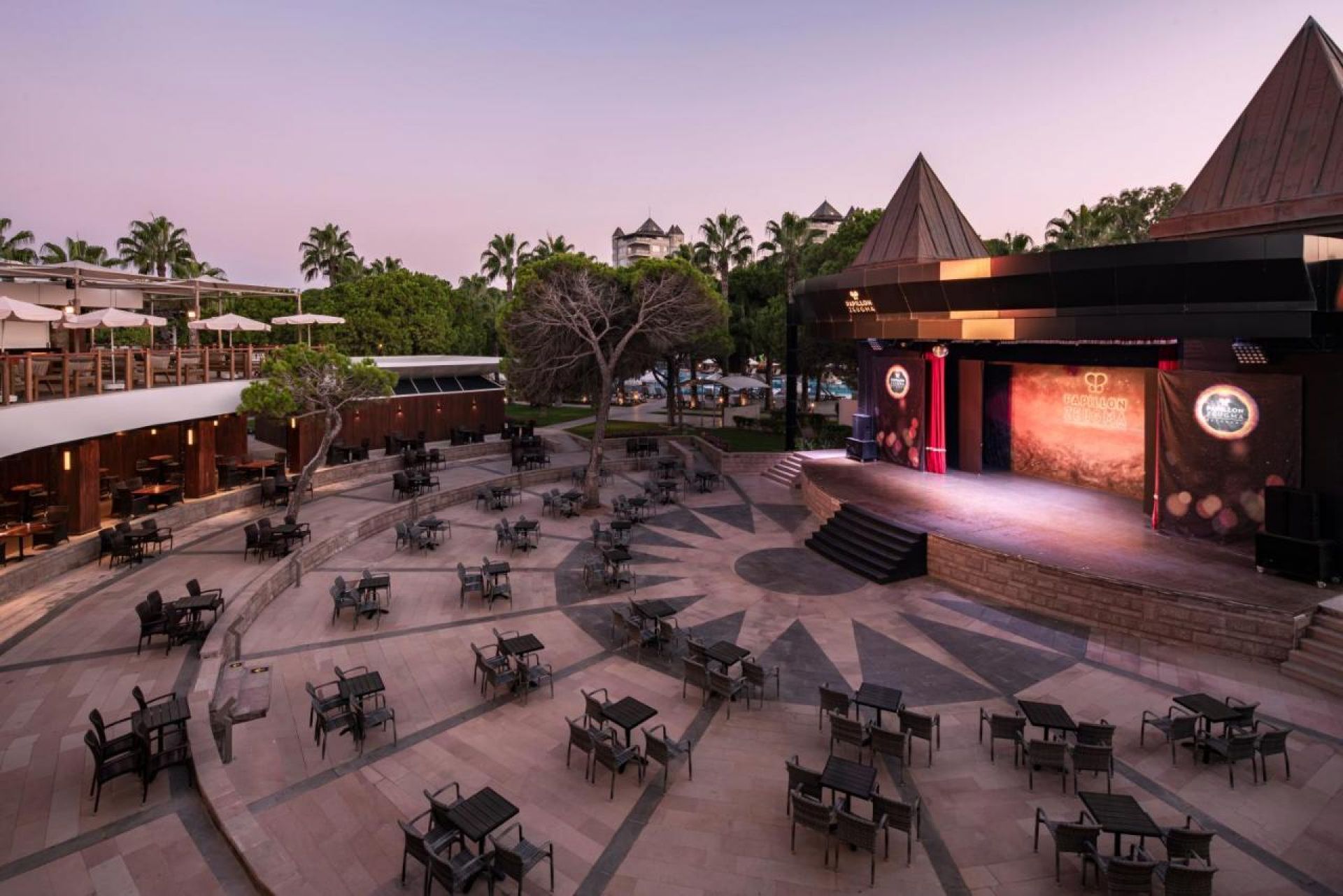 Основен ресторант, вегетарианско меню, 4 a-лa-карт ресторанта (средиземноморски, китайски, интернационален, турски – с предварително записване, за времето на престоя, едно посещение във всеки ресторант – безплатно), 7 бара (един от тях е отворен 24 часа), 2 открити басейна (2300 и 1400 кв.м.), 2 закрити басейна, водни пързалки, анимация, амфитеатър, кино, жива музика, дискотека (безплатно)