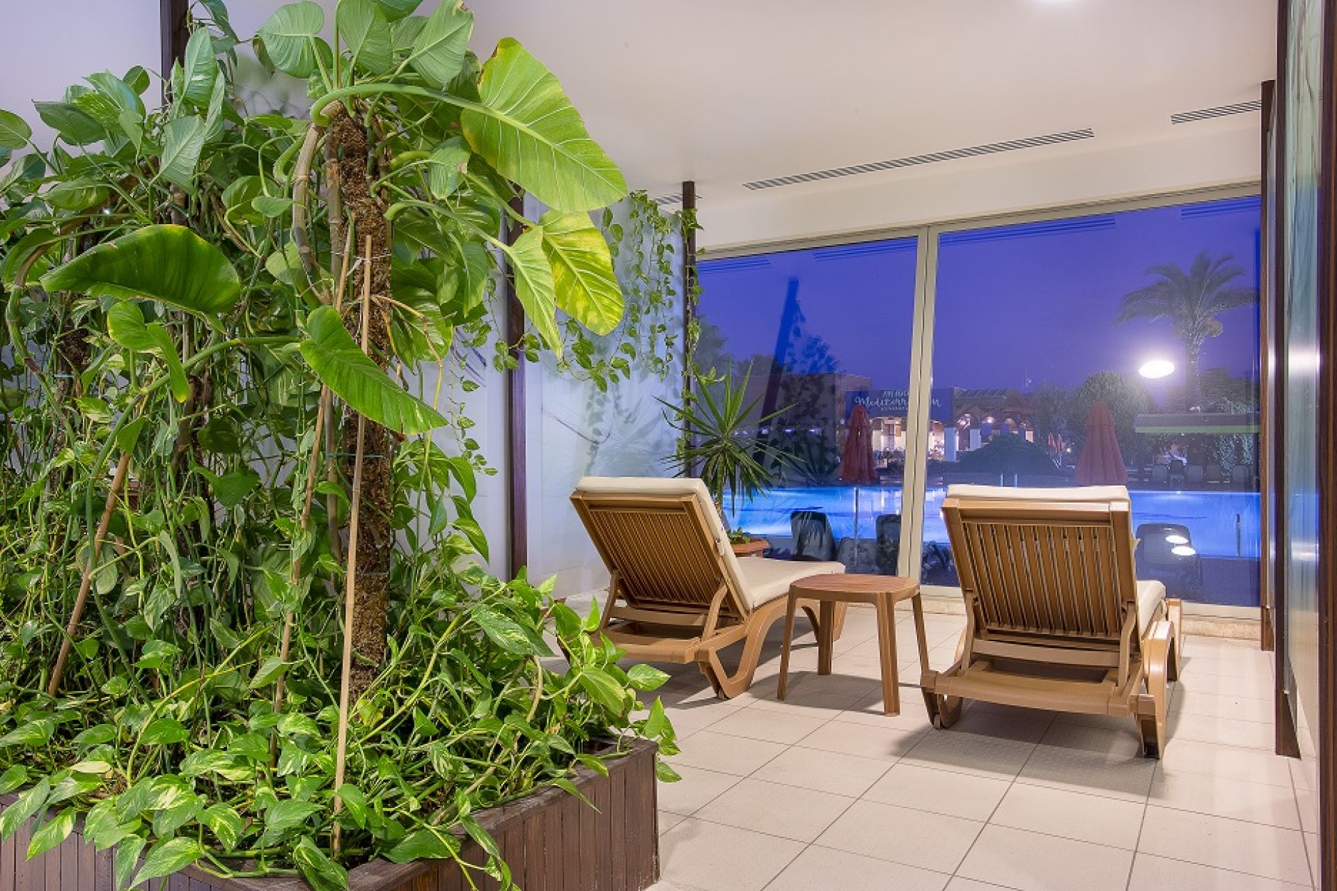 Основен ресторант, 3 а-ла карт ресторанта съгласно концепцията на хотела. ,4 бара, 2 открити басейна, басейн, 8 водни пързалки, СПА център с 1 отопляем вътрешен басейн с морска вода, фризьор (платен), 21 зали за конференции, WIFI-съгласно концепцията на хотела