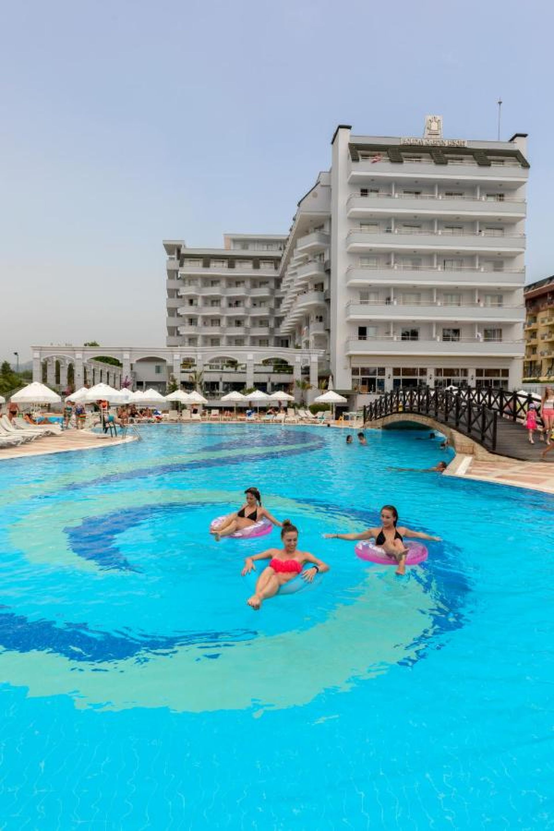 Основен ресторант, 3 бара, открит и закрит басейн, 3 водни пързалки, фризьор, 2 конферентни зали, Безплатни услуги: турска баня, сауна, аеробика, плажен волейбол, тенис ракети под наем, дартс, дискотека (напитки - платени), скуош, кану, безмоторни водни спортове. Платени услуги: Масаж, парна баня, билярд, осветление тенис корт, Интернет кафе, моторни водни спортове.