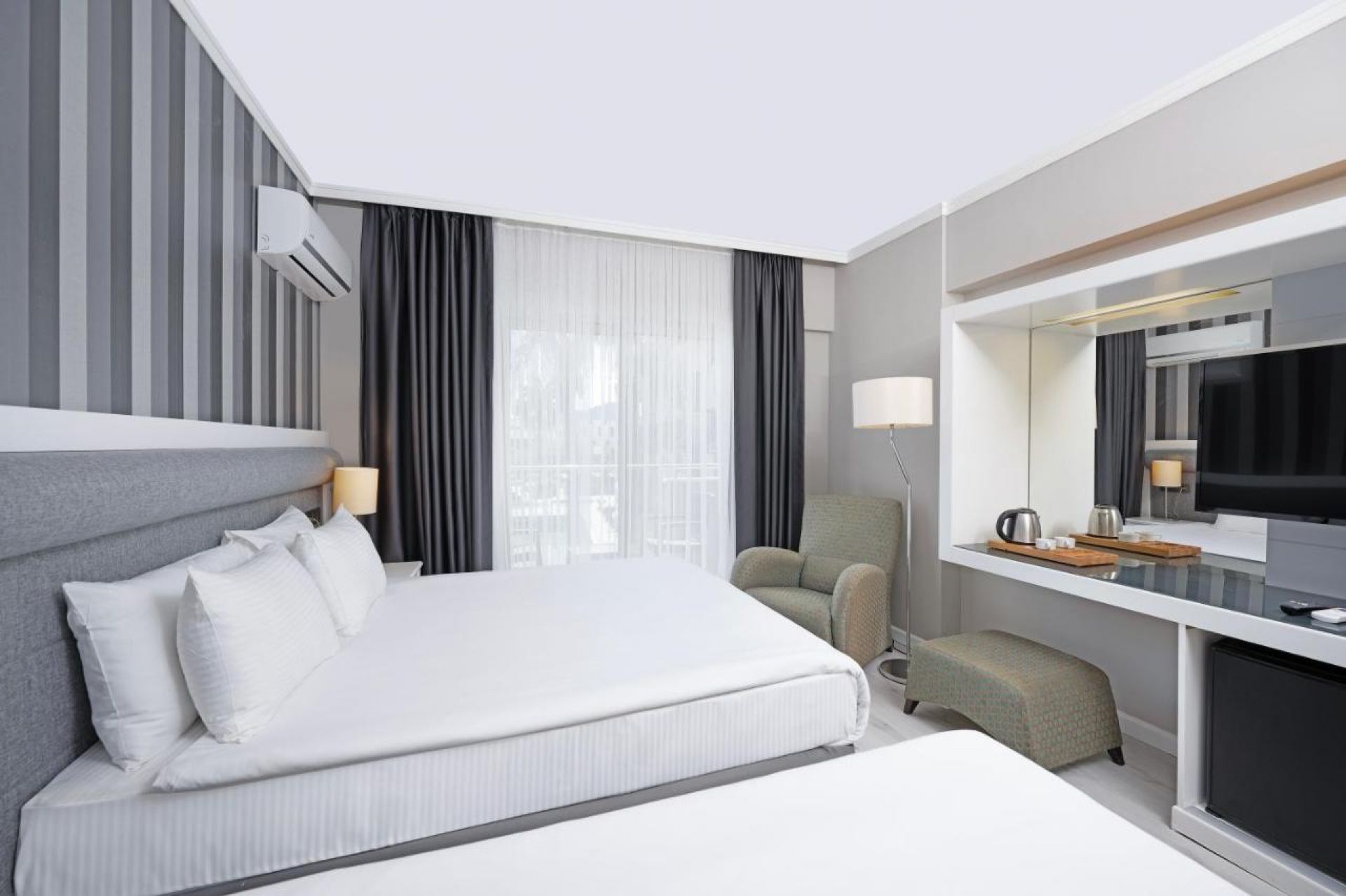 Всички стаи са оборудвани с климатик, телевизор, телефон, баня с душ, сешоар, чехли, сет за чай/кафе, минибар (безплатен), сейф (безплатен).