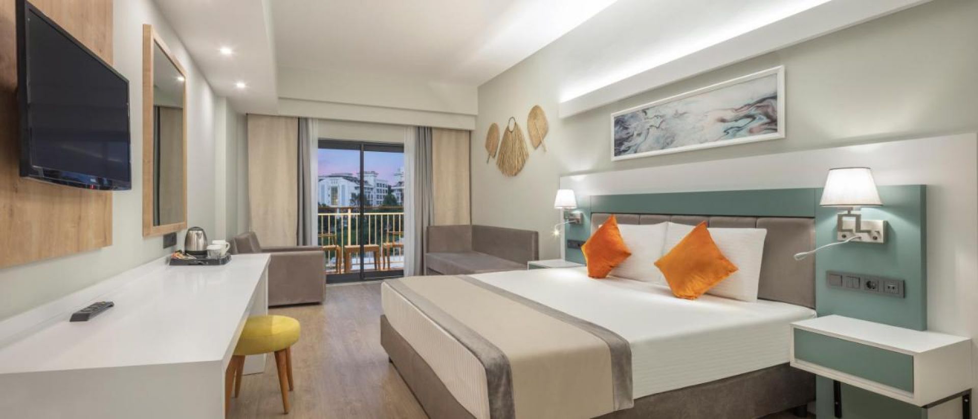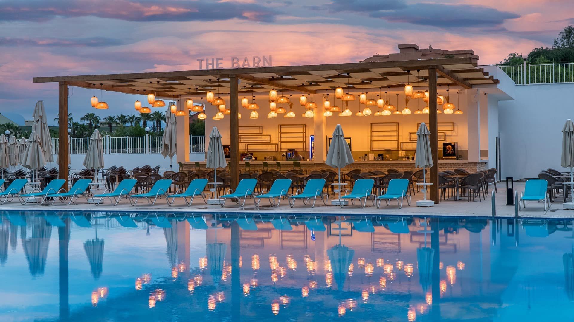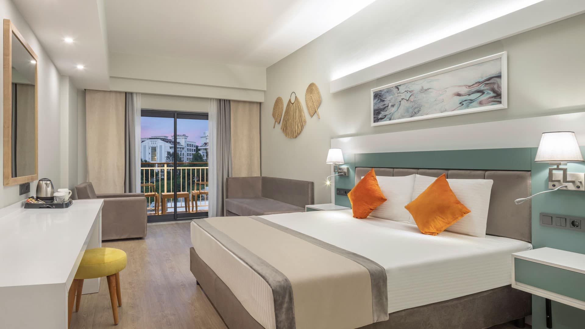 Основен ресторант, турски а-ла-карт ресторант, италиански а-ла-карт ресторант, лоби бар, бар при басейна, снек бар, бар на плажа, сладкарница, открит басейн с джакузи, аквапарк със 7 водни пързалки, закрит отопляем басейн, SPA център с турска баня и сауна, анимационна програма със спортни и развлекателни дейности, жива музика, тематични вечерни представления, безплатен безжичен интернет на територията на целия хотел.