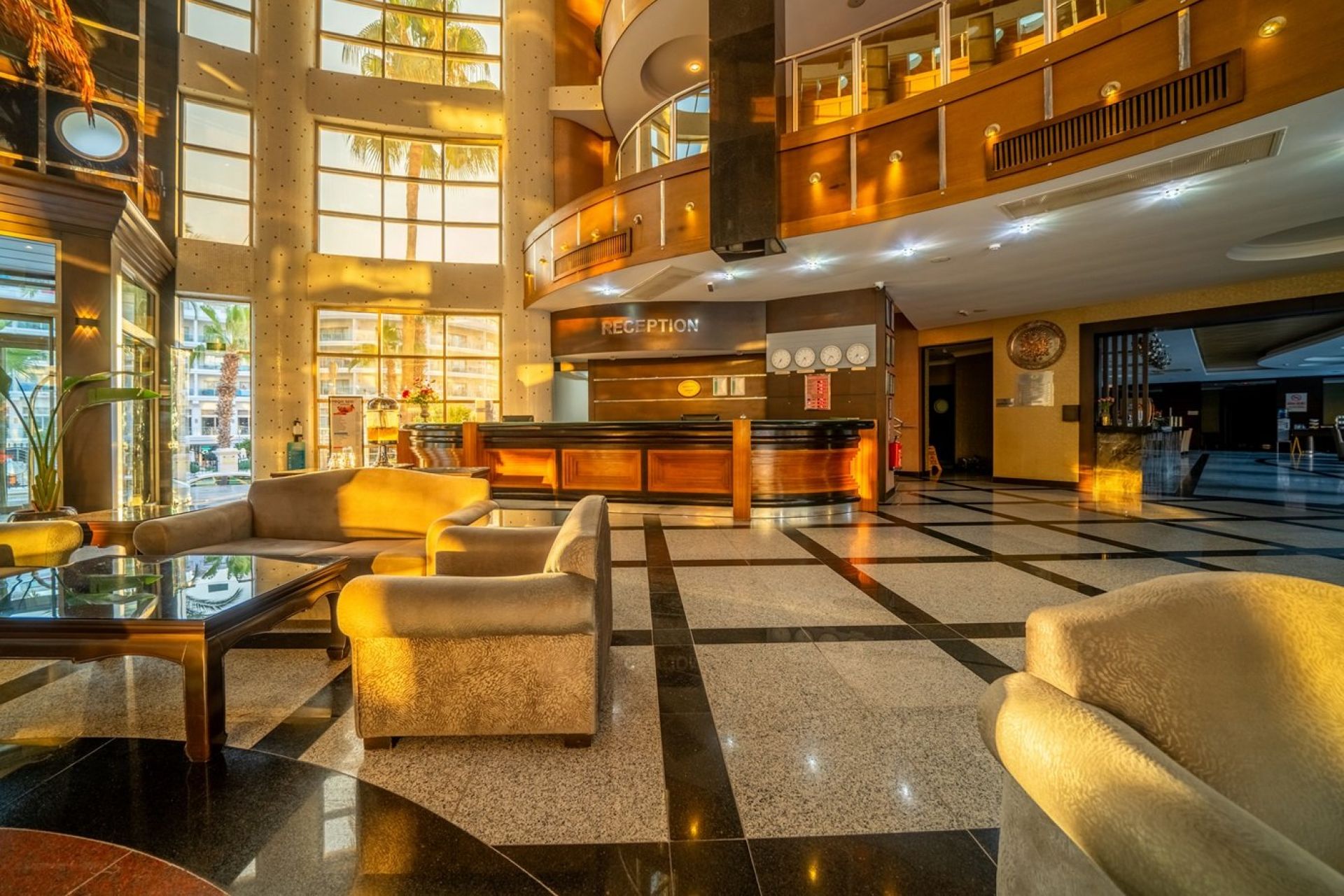 Основен ресторант, 3 бара, открит басейн, закрит басейн, детски басейн, водна пързалка, СПА център, детски клуб, аеробика, билярд, дискотека, анимация, магазини, конферентни зали. Безплатни услуги: сауна ,турска баня, фитнес, WI-FI интернет в лоби, тенис на маса. Платени услуги: билярд, интернет кафе, пералня, лекар, детегледачка ,Спа и Уелнес център Плаж: Градски плаж - Чадъри и шезлонги при басейна – безплатни, а на плажа – платени.