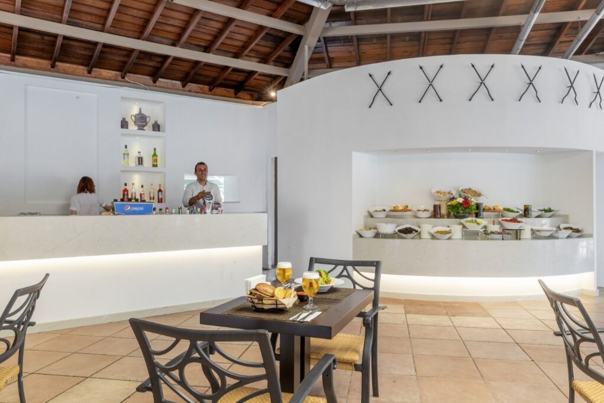 Основен ресторант, 3 а-ла-карт ресторанта (италиански, рибен, азиатски - срещу заплащане), 4 бара, сладкарница, 2 открити басейна (1333м²) , 1 закрит басейн (80м² ), СПА център , магазини, 6 конферентни зали , 2 тенис корта с изкуствено покритие, паркинг. За децата: детски бюфет, детски басейн (65м²) , детска площадка, мини клуб (4–12 г.), тиин клуб (12-16 г.), мини диско, детска стая за игри Безплатни услуги: Сауна, турска баня, фитнес, аеробика, плажен волейбол, баскетбол, тенис корт, тенис на маса, дартс, мини футбол, боча, телевизионна зала, анимационна програма, музика на живо, WI-FI интернет. Платени услуги: СПА център, масаж, пилинг, фризьор, лекар, детегледачка, химическо чистене, интернет кафе, видео игри , оборудване за тенис корт, осветление за тенис корта, уроци по тенис, билярд, водни спортове, велосипеди под наем, курс по гмуркане Настаняване с домашни любимци: до 5 кг. ПЛАЖ: Собствен, пясъчен удостоен със сертификат "Син флаг" . Чадъри и шезлонги на плажа и при басейна – безплатно, плажни кърпи - безплатно. Шатри на плажа (платено).