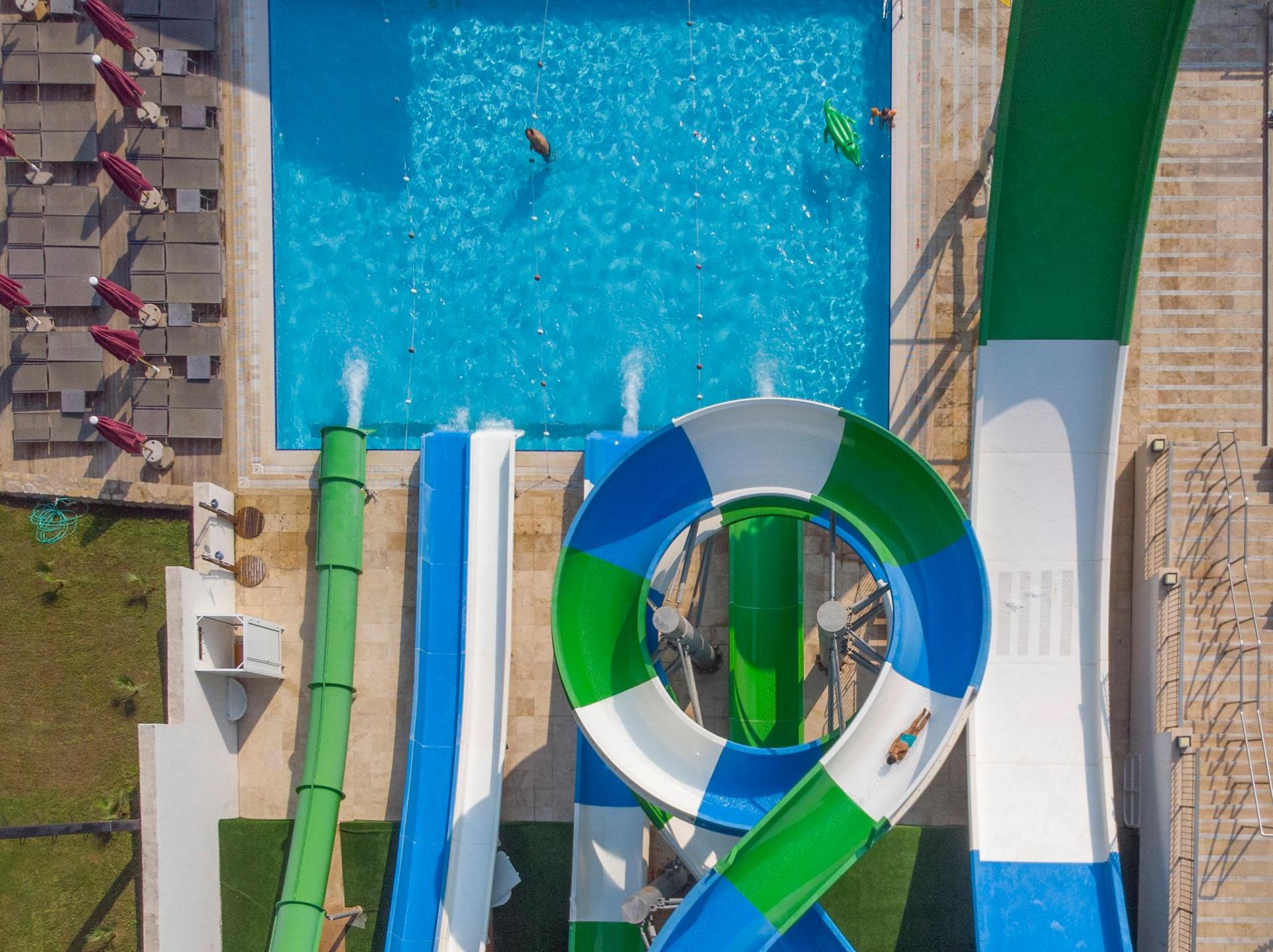 Оcновен ресторант, 4 а-ла-карт ресторанта (с предварителна резервация), 5 бара, 5 открити и 1 закрит басейн, 5 водни пързалки, аквапарк, магазини, СПА център, конферентни зали, паркинг. За децата: Детско меню, детски басейн, водни пързалки, детска площадка, мини клуб (4–12 г.), мини дискотека. Безплатни услуги: Сауна, турска баня, плажен волейбол, баскетбол, тенис корт, тенис на маса, кану, водно колело, анимация, музика на живо, интернет. Платени услуги: Масаж, фризьор, детегледачка, магазини, билярд и игрални автомати (срещу депозит), осветление на тенис корта, моторни водни спортове. Плаж: Собствен, пясъчен – чадъри и шезлонги на плажа и при басейна – безплатно, плажни кърпи - срещу депозит.