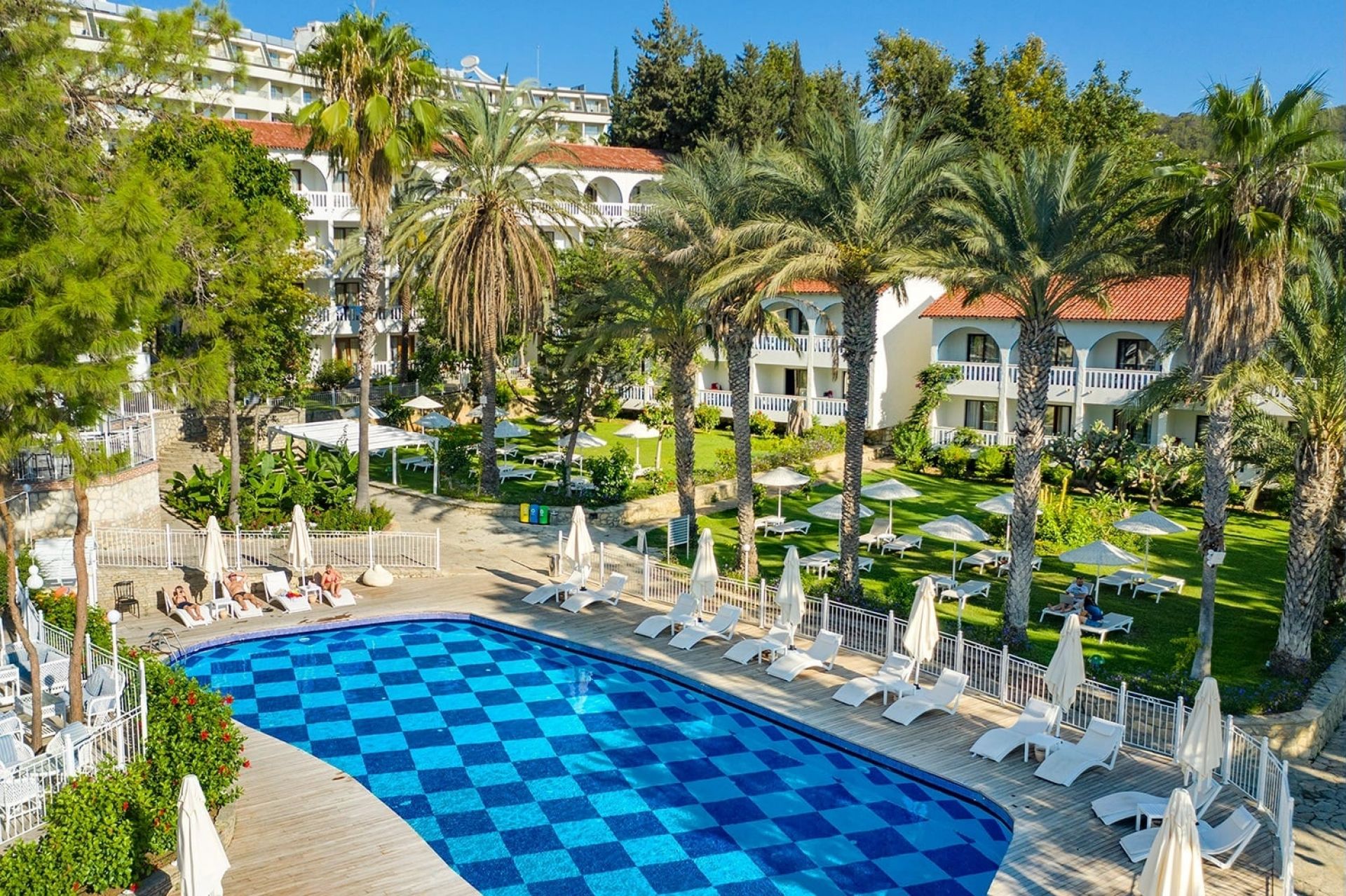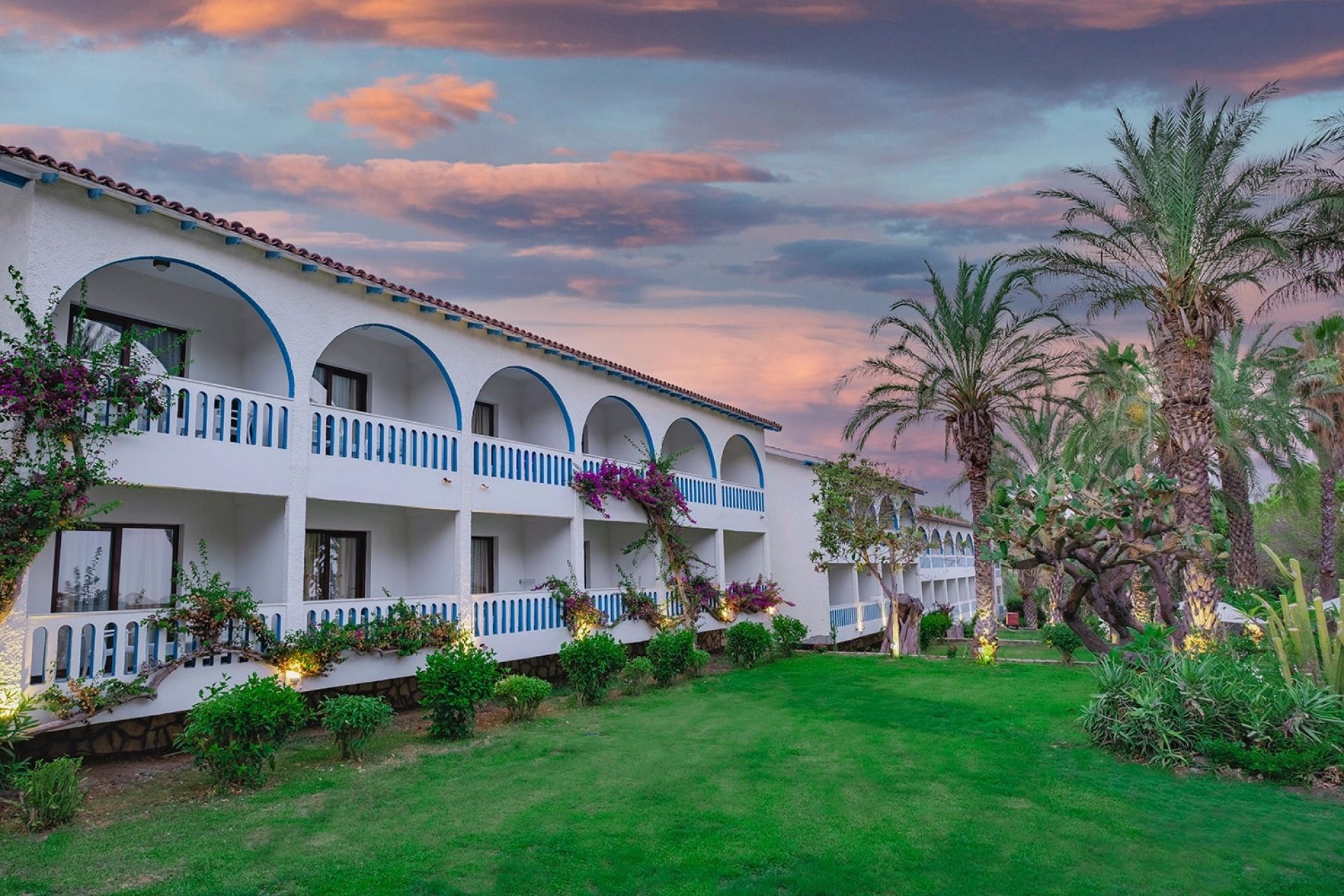 Стаи Main Building: Standard room land view (изглед суша - 24,8 м2), Standard room sea view (изглед море - 24,8 м2), Family Room (2 спални, баня - 39,68 м2).