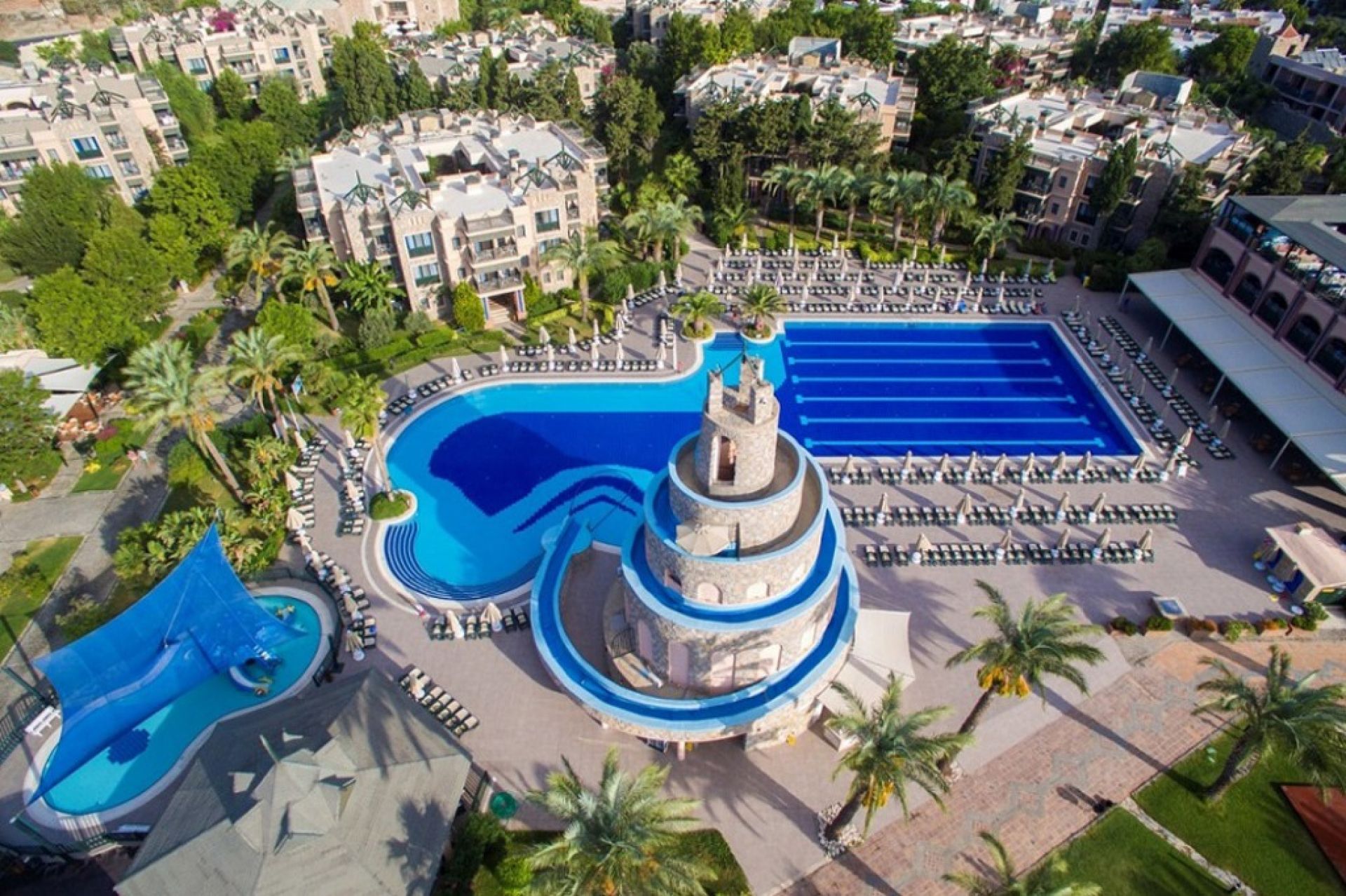 Хотелът разполага с основен ресторант, 3 а-ла-карт ресторанта - италиански, морски и турски (може да се ползва 1 път безплатно при престой от 7 нощувки), 3 бара, външен басейн, вътрешен басейн, водни пързалки, СПА център, паркинг, конферентни зали.
