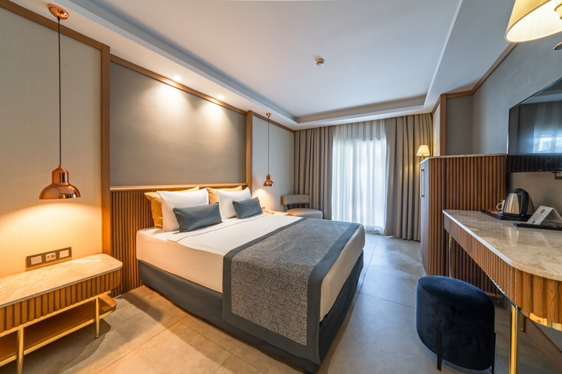 Хотелът разполага общо с 362 стаи в една основна сграда, от тях 132 стандартни (30 m²), 85 делукс (37 m²), 137 фамилни (41 m²) и 8 апартамента (35 - 150 m²). Всички стаи са оборудвани с климатик, телевизор, телефон, баня с душ, сешоар, сет за кафе и чай, мини бар, сейф (безплатно), балкон, WI-FI на цялата територия на хотела. Почистване на стаите и смяна на кърпите - всеки ден, смяна на спално бельо - 3 пъти седмично.