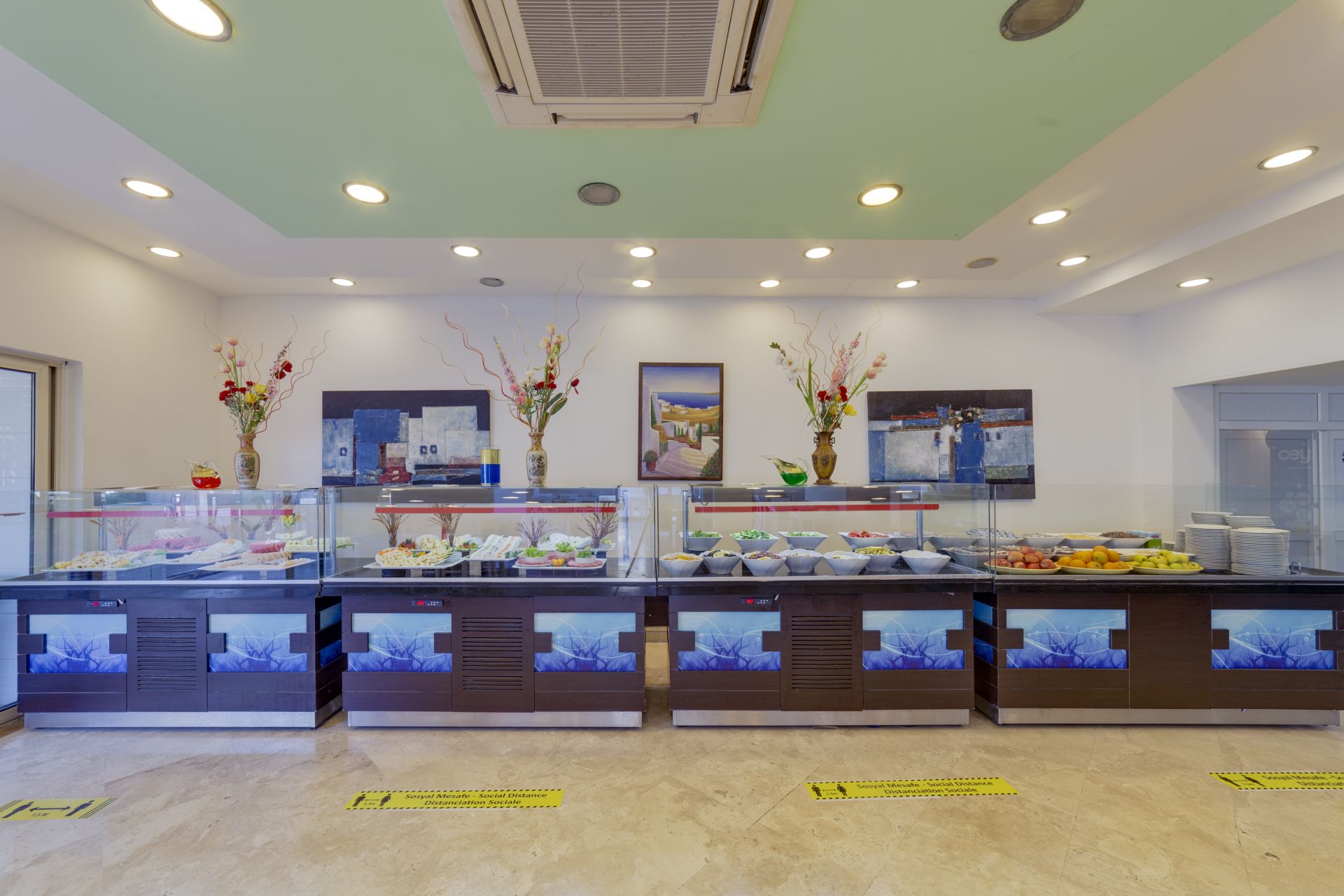 Основен ресторант, 1 бар (при басейна), открит басейн, детски басейн, СПА център, фризьор, мини маркет.