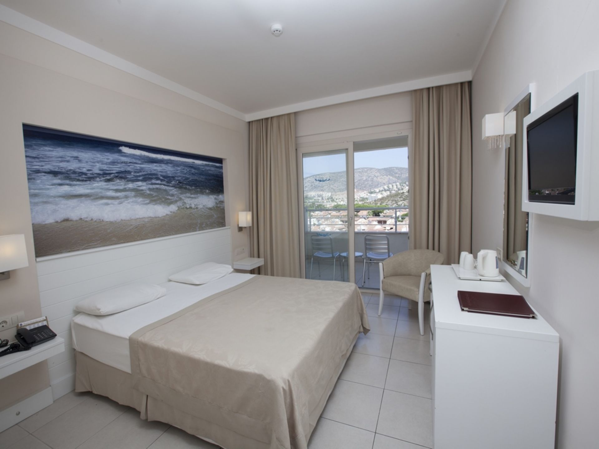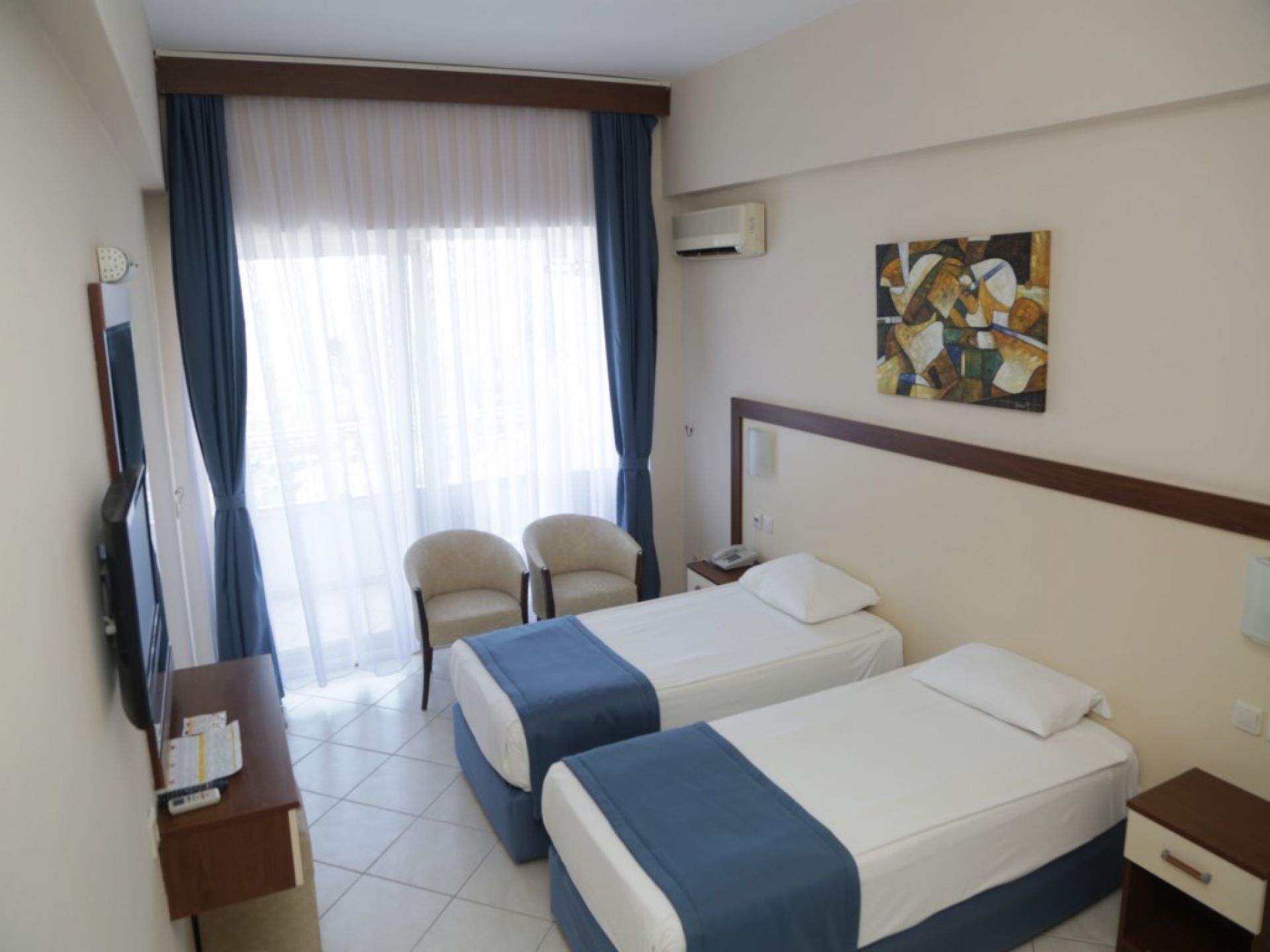 Хотелът разполага с 338 стаи, разпределени в 2 блока. В основната сграда са разположени - 91 стандартни стаи с изглед градина (20 кв.м.), 100 стандартни стаи с изглед море (25 кв.м.), 25 стандартни фамилни стаи (две свързани стаи, 35 кв.м.), 3 стаи за инвалиди (25 кв.м.) и промо стаи (без тераси), в новата сграда са разположени: 11 стаи с директен достъп до басейна (две свързани стаи, 40 кв.м.), 37 делукс стаи (25 кв.м.), 16 дуплекс фамилни стаи (две свързани стаи, 39 кв.м.), 57 селект фамилни стаи (две свързани стаи, 42 кв.м.), и 3 делукс суита (две свързани стаи, голяма тераса с джакузи, 61 кв.м.). Всички стаи са оборудвани с климатик, телевизор, телефон, баня с душ, сешоар, сет за чай/кафе, мини бар (платен), сейф (платен), балкон. Почистване на стаите - всеки ден, смяна на спалното бельо - 3 пъти седмично, смяна на кърпите - 3 пъти седмично.