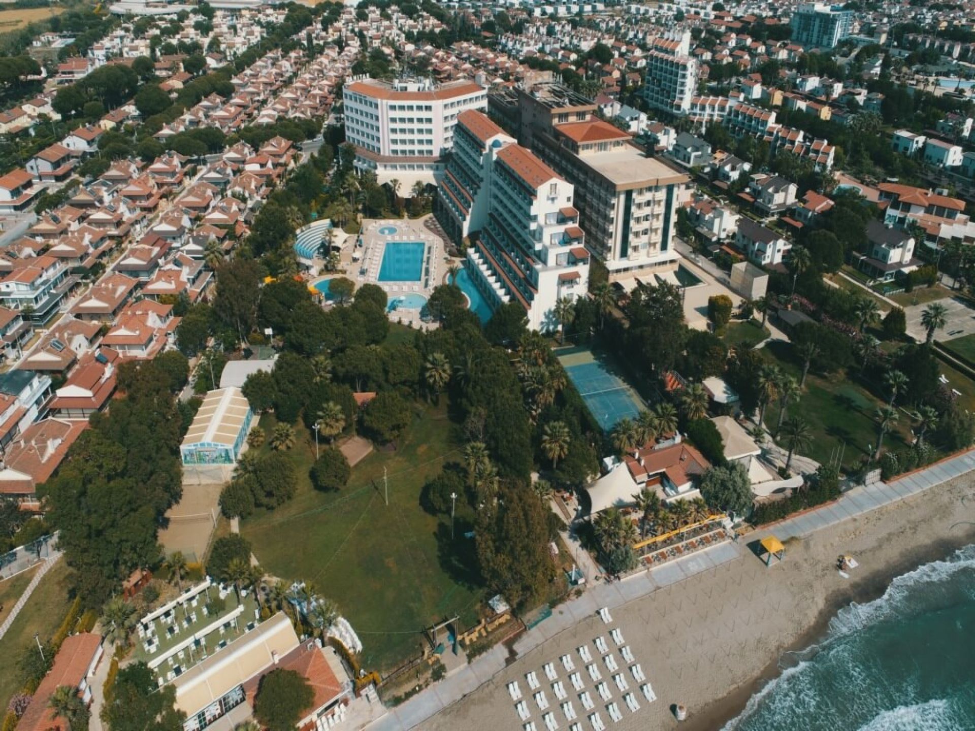 Хотелът се намира на 75 км. от летище Измир, на 150 км. от летище Милас, на 7 км. от центъра на Кушадасъ, на брега на морето. Построен през 1989 година, с обща площ 20 000 кв.м,, изцяло обновен и реновиран през 2010 г., последно реновиране на стаите в основната сграда през 2017/2018 г.