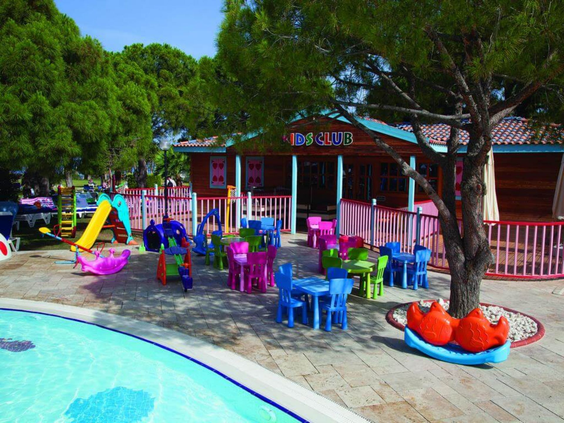 Основен ресторант, 2 а-ла-карт ресторанта: SUNSET (с предварителна резервация, безплатно при настаняване от 4 и повече нощувки) и KUMSAL RESTAURANT & BAR (платен), снек бар, 2 бара, 2 открити басейна, закрит отопляем басейн в СПА центъра, 3 водни пързалки, СПА център, салон за красота, магазини, конферентна зала, дискотека, паркинг.