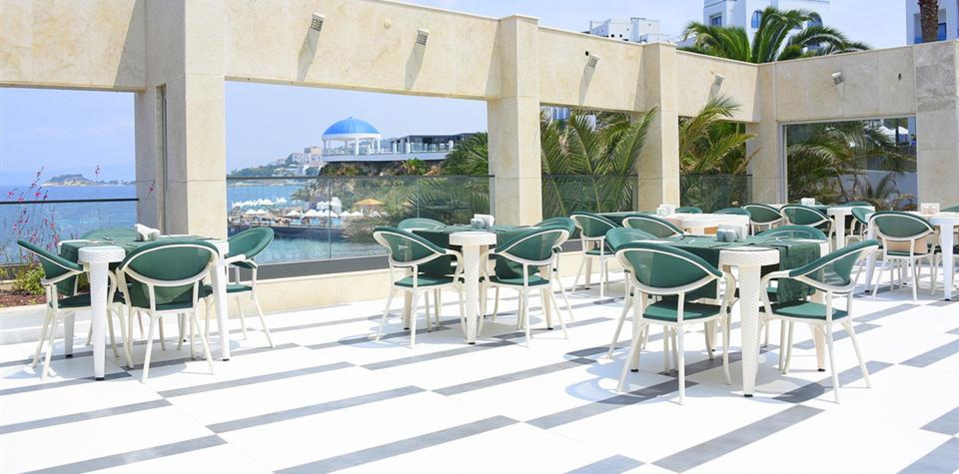 Намира се на 80 км от летище Измир, на 125 км от летище Милас, на 3 км от центъра на Кушадасъ, на брега на морето. Построен през 1968 г. Изцяло реновиран през 2018 г. / 2019 г.