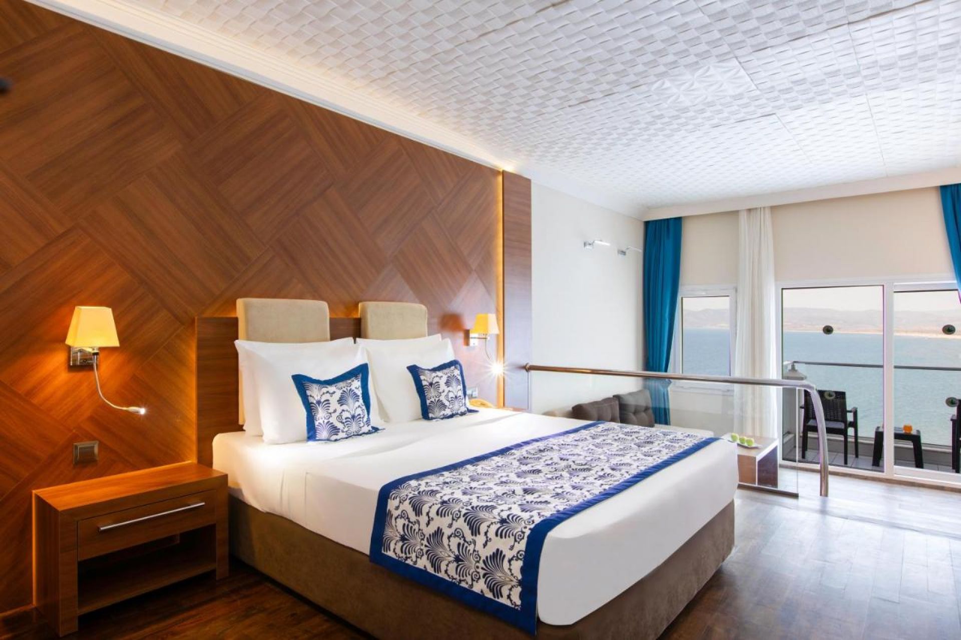 Намира се на 75 км от летище Измир, на 140 км от летище Милас, на 9 км от центъра на Кушадасъ, на брега на морето. Частично реновиран през 2014 г.