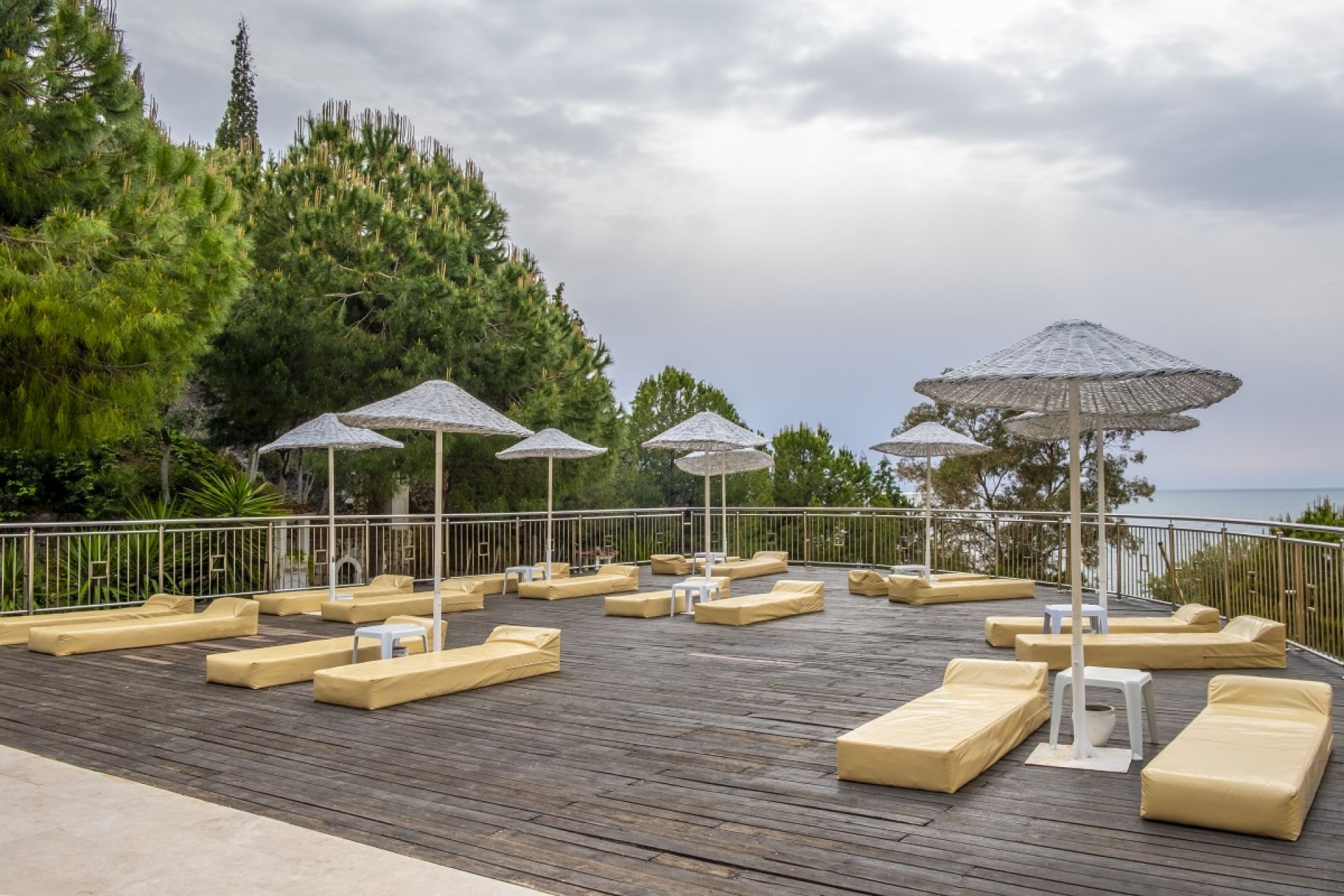 Собствен, платформа. Шезлонги и чадъри на плажа и при басейна - безплатно. Плажни кърпи - безплатно.