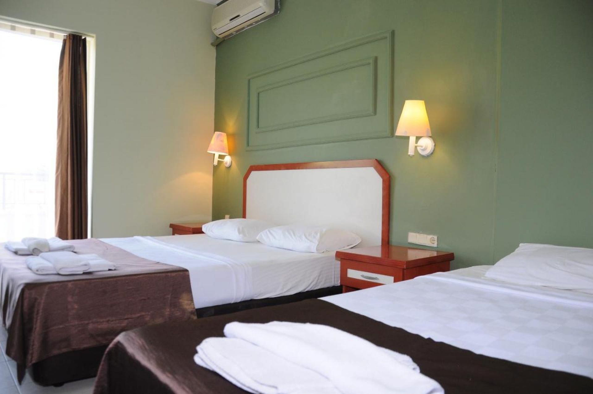Хотелът разполага с общо 129 стандартни (18 кв.м.) и фамилни стаи (34 кв.м.), всички оборудвани с климатик, телевизор, телефон, баня с душ, сешоар, минибар (платен), сейф, балкон. Почистване на стаите – всеки ден, смяна на бельото и кърпите – 2 пъти в седмицата.