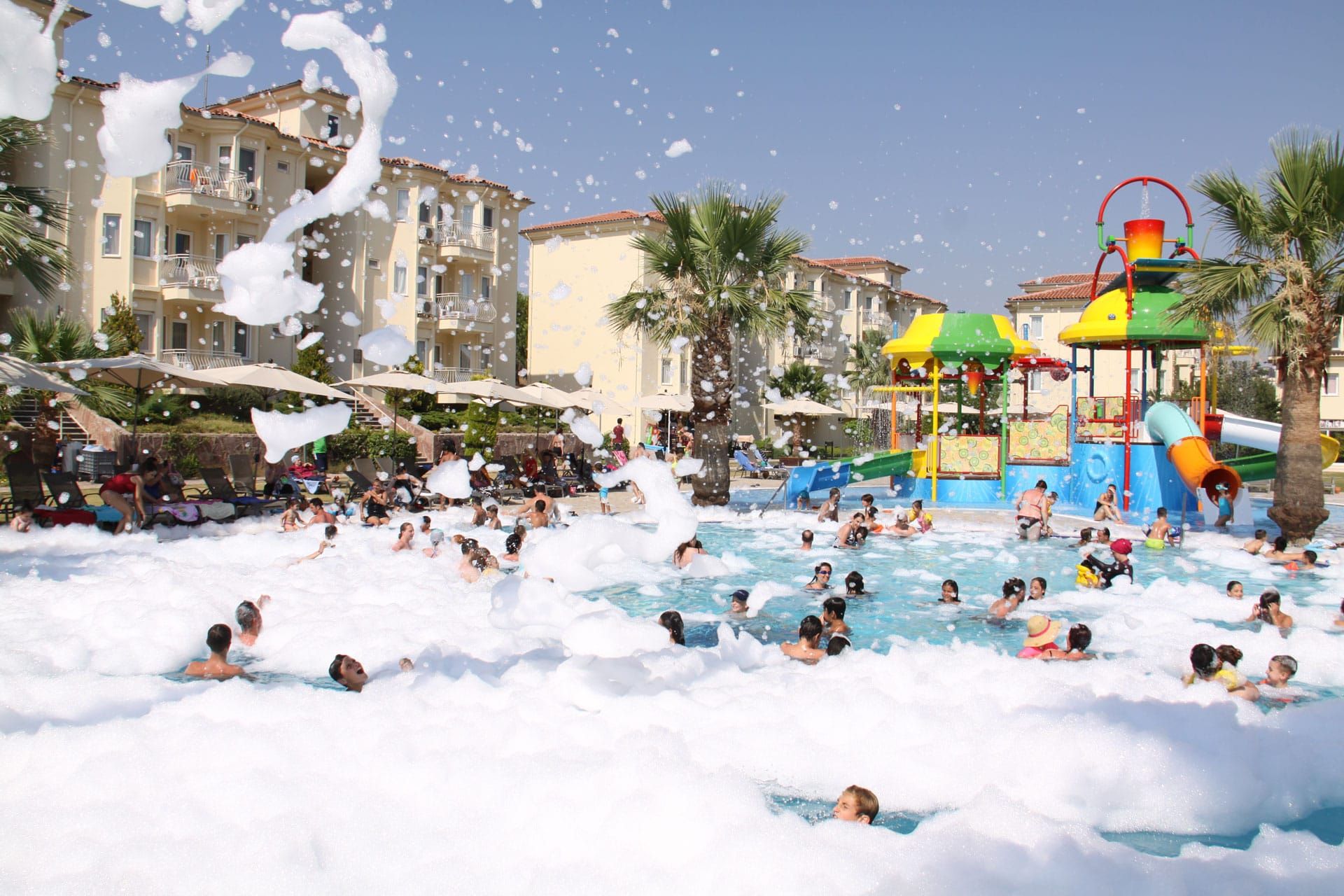 Основен ресторант, 2 бара, открит басейн, аквапарк, СПА център, телевизионна зала, магазини, конферентна зала, паркинг.