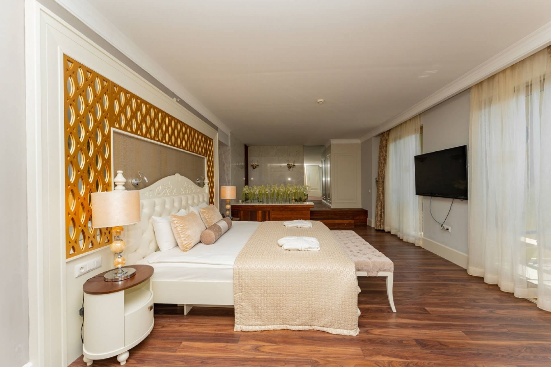Хотелът разполага с 470 стаи, от които 406 Standard room (с изглед градина, частичен изглед море и изглед море - 29 m²), 50 Family suite (40 с изглед море, 2 спални, 1 баня - 36 m²: 10 с изглед градина, 2 спални, 1 баня - 42 m² ), 9 Royal deluxe suite (с изглед море, 1 спалня, 1 всекидневна, 2 бани - 69 m² ), 4 Laguna suite (с изглед море, 2 спални, 1 всекидневна, 2 бани - 86 m²), 1 Presidental suite (с изглед море, 2 спални, 1 всекидневна, 2 бани, сауна, джакузи - 165m²) и 5 Handicapped (пригодени за хора с ограничена подвижност - 29 m²). Всички стаи са оборудвани с климатик, телевизор, телефон, баня с душ, сешоар, сет за чай/кафе, минибар (ежедневно зареждане с безалкохолни напитки, бира, вода и специално мляко Nesquik за семейства с деца - безплатно), сейф (безплатен), балкон, Wi-Fi интернет. Икономичните стаи са на приземен етаж без балкон. Почистване на стаите и смяна на кърпите - всеки ден, смяна на спалното бельо - 3 пъти в седмицата.