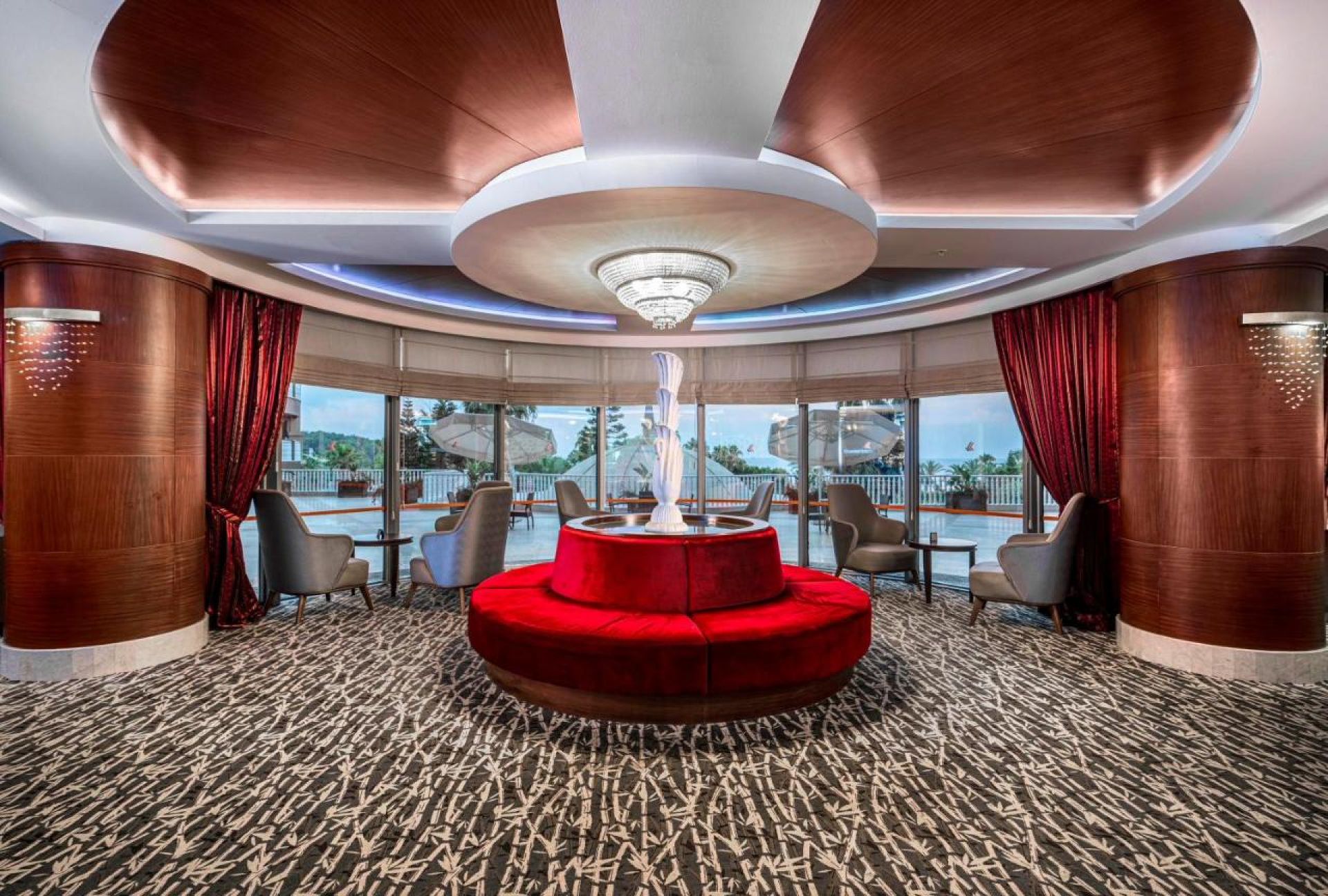 Основен ресторант, 3 а-лa-карт ресторанта – ( eдно безплатно посещение с предварителна резервация) турски, мексикански и японски-(платен), 6 бара,(1 от които работи 24 часа) дискотека, coffee corner, сладкарница, гьозлеме, основен басейн с 5 пързалки, водна кула с 3 пързалки, външен басейн с джакузи, вътрешен басей, магазини, SPA център, дискотека, 2 конферентни зали. За децата: Мини клуб (4-12 г.), детски басейн, детско меню, baby corner (24 часа), анимация. Безплатни услуги: турска баня, сауна, фитнес, плажен волейбол,зумба, аеробика, дартс, тенис на маса, тенис на корт, тенис ракети, баскетбол, волейбол, плажен волейбол. Платени услуги: масаж, аюрведа, грижи за кожата и тялото, фризьор, доктор, водни спортове, детегледачка, боулинг, билярд.