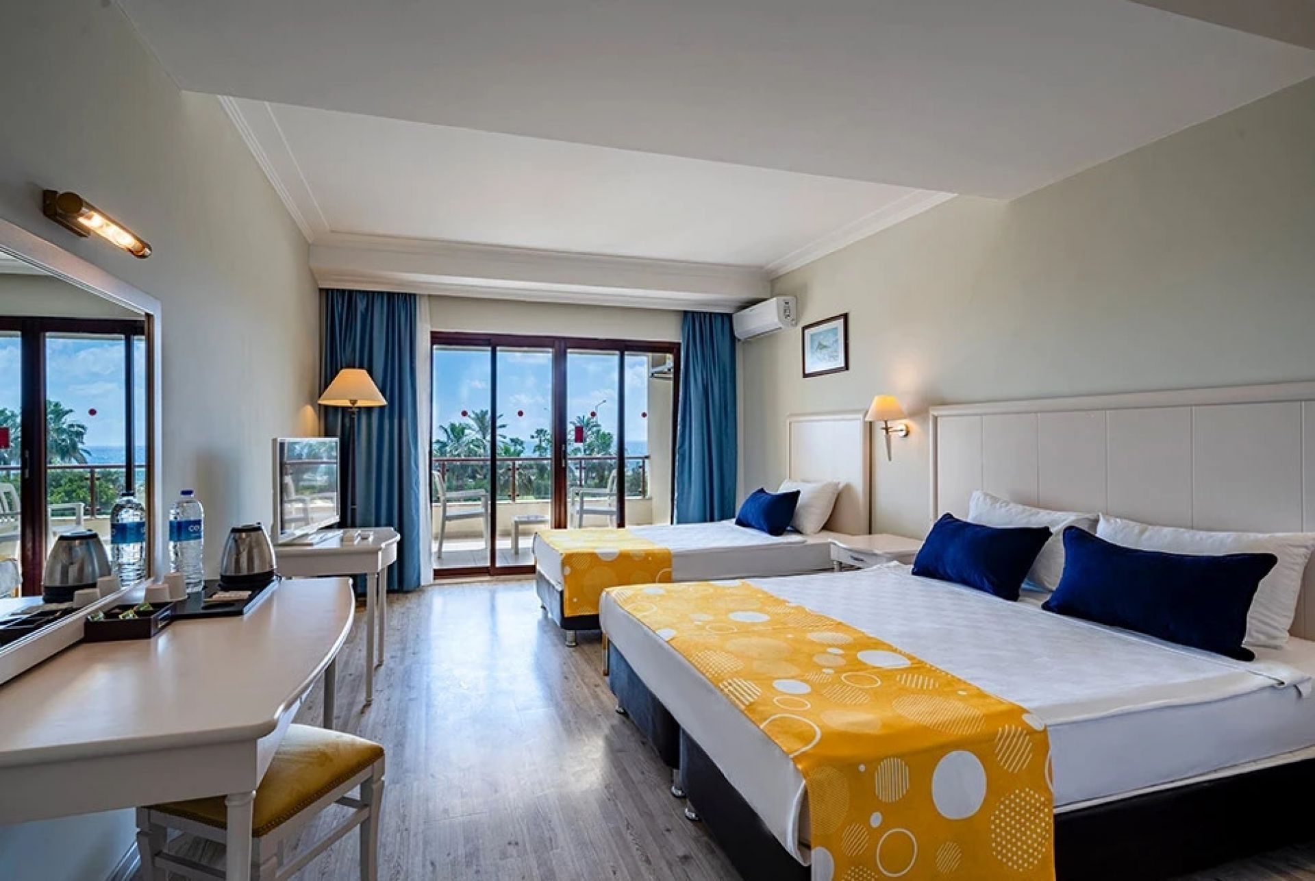 Хотелът разполага с общо 234 стаи, разположени в една 6-етажна основна сграда Main Building, от които 151 стандартни стаи Standard room land view (изглед суша - 30 м2), 40 стандартни стаи Standard room sea view (изглед море - 30 м2), 10 стандартни стаи Bunkbed room (спалня + двуетажно легло - 30 м2), 31 фамилни стаи Family room (2 спални, 1 бяна– 35 м2), 2 стаи за инвалиди. Всички стаи са оборудвани с климатик, телефон, телевизор, баня с душ/вана, минибар (вода и безалкохолни напитки – безплатно, само при пристигане), сет за кафе/чай, сейф (безплатен). Почистване на стаите - всеки ден, смяна на кърпите – при поискване, смяна на спалното бельо – 2 пъти седмично.
