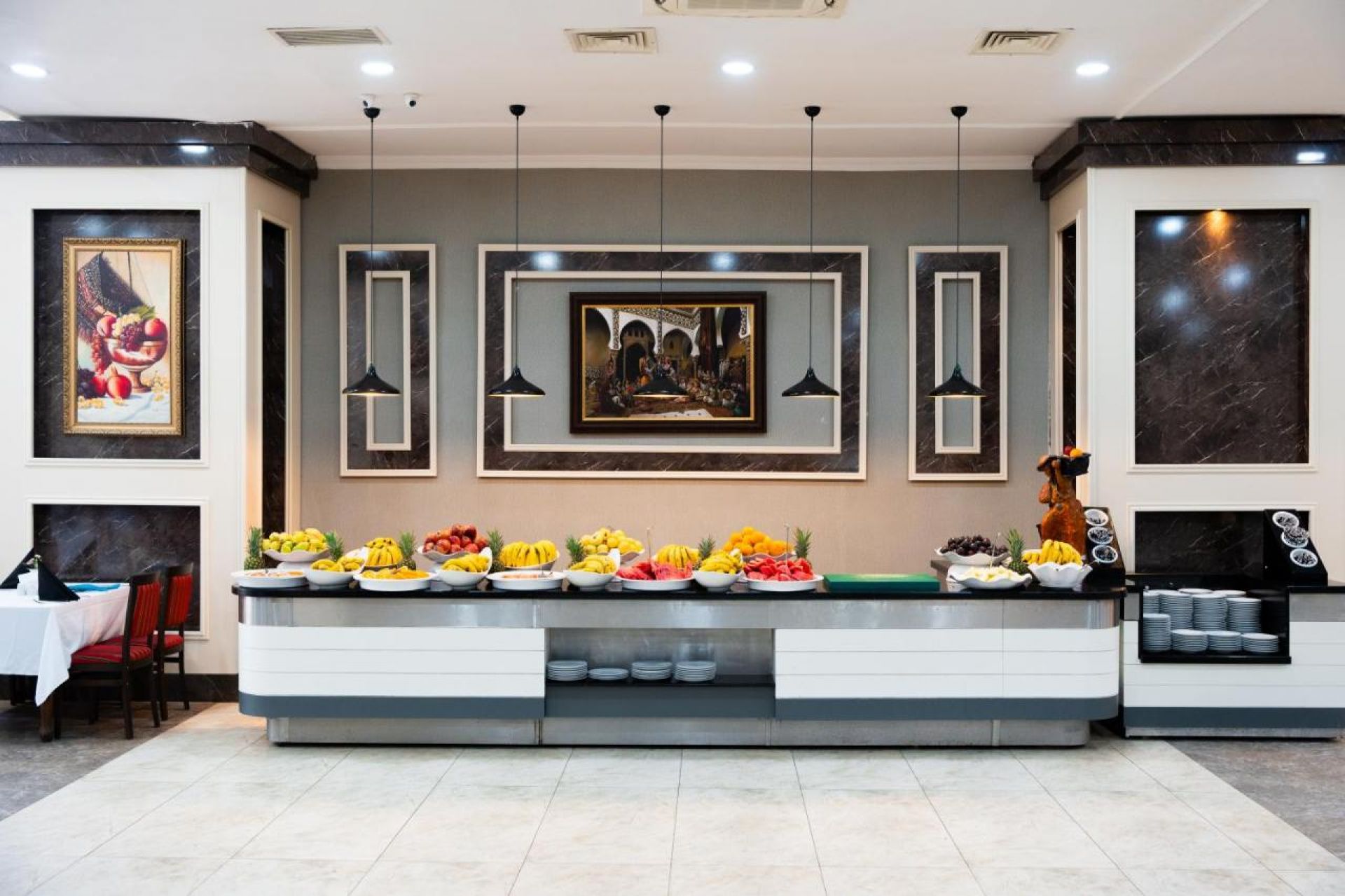 Хотелът разполага с основен ресторант, 2 а-ла-карт ресторанта (турски и рибен-съгласно концепцията), 5 бара, дискотека, открит и закрит басейн, 3 водни пързалки, СПА център, фитнес, конферентни зали, паркинг.