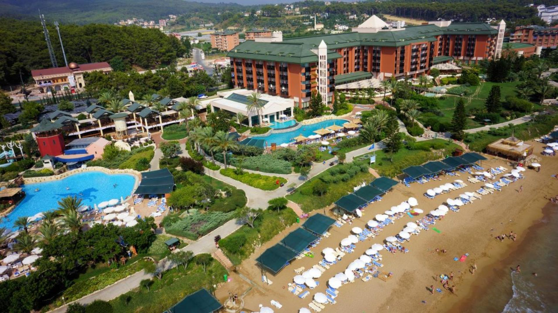 Основен ресторант, 3 а-ла-карт ресторанта -турски, азиатски, италиански, 4 бара, открит басейн, детски басейн, водни пързалки за деца и възрастни, детска площадка, мини клуб (4-12г.), конферентна зала.