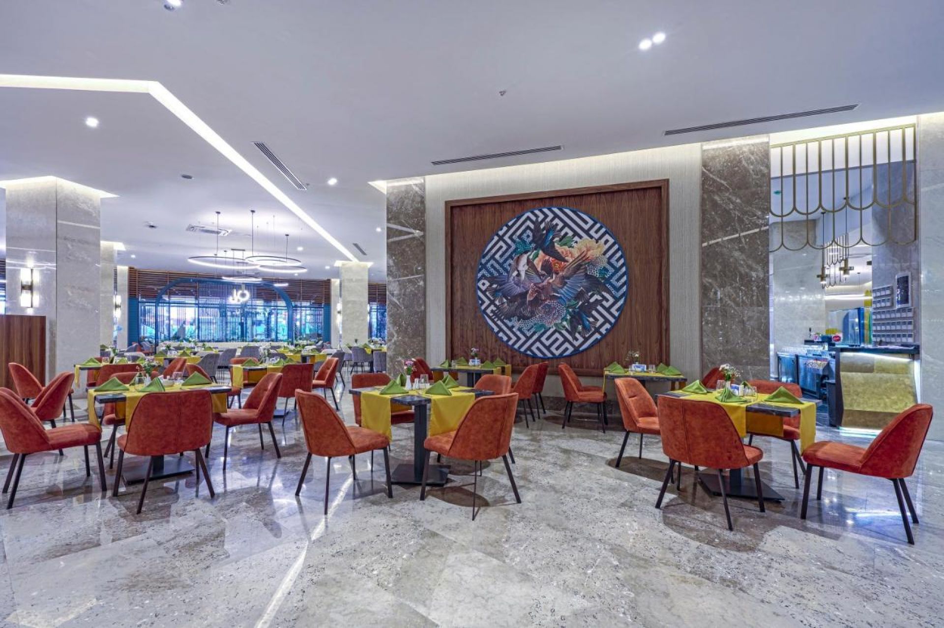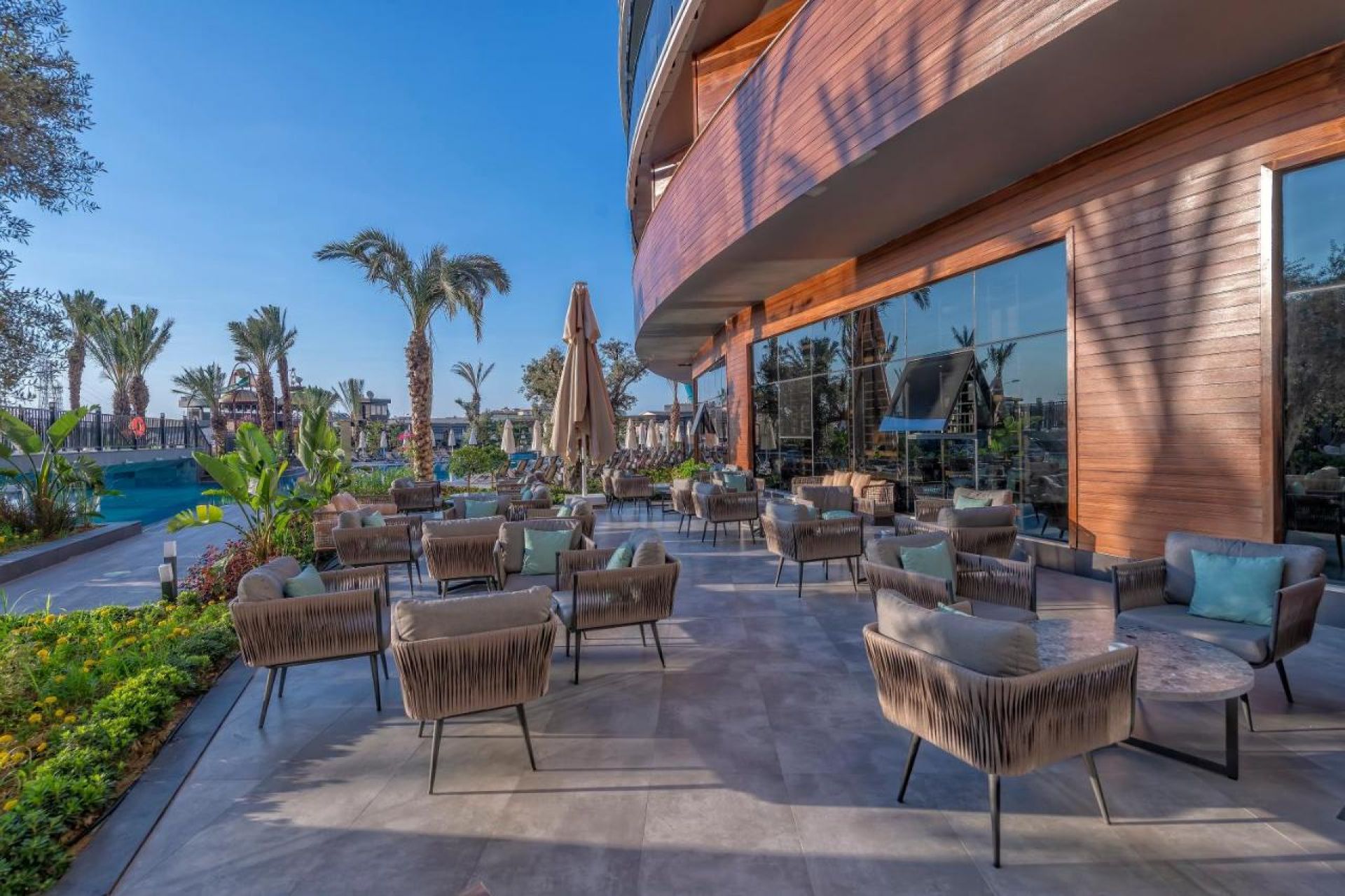 Основен ресторант, 2 а-ла-карт ресторанта (турски, средиземноморски - безплатни с предварителна резервация), 6 бара - Лоби бар, Бийч бар, Пул бар, Мока Бар, Аква бар, Диско бар, открит басейн, детски басейн - 20 m², 35cm дълбочина, SPA център, турска баня, сауна - безплатно,фитнес, анимационна програма, безжичен интернет, конферентна зала,паркинг.