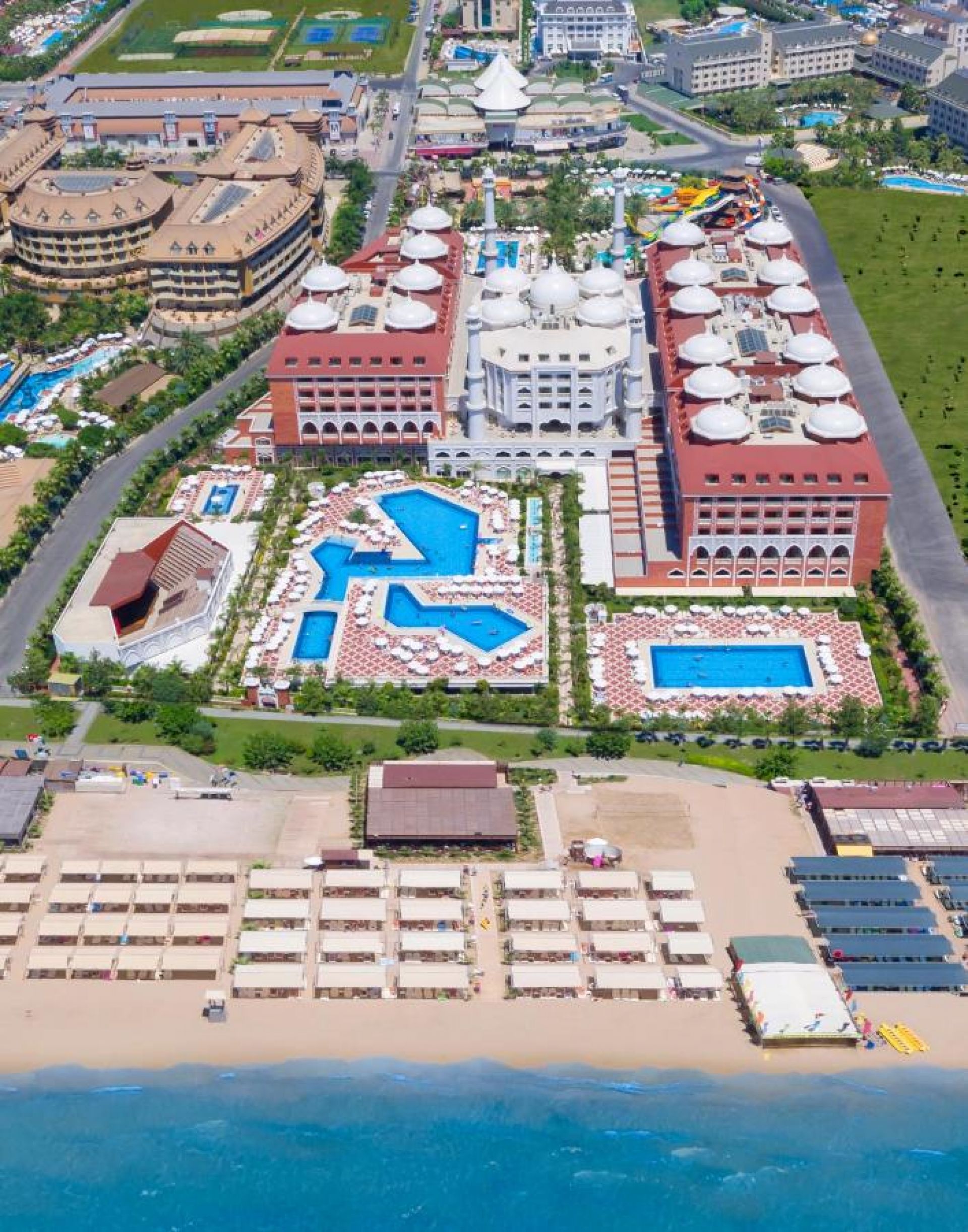 Основен ресторант, 3 а - ла - карт ресторанта (с предварителна резервация), 8 бара, 6 открити и 1 закрит басейн, 3 водни пързалки, магазини, SPA център, нощен клуб, конферентна зала. За децата: Детско меню, детски площадки, мини клуб (4-12 г.), 2 детски басейна, водни пързалки, мини дискотека, анимация, лунапарк, зоопарк. Безплатни услуги: Турска баня, сауна, фитнес, дартс, тенис на маса, плажен волейбол, аеробика, жива музика, анимация, интернет (в лоби). Платени услуги: Масаж, център за красота, фризьор, магазини, билярд, боулинг, интернет кафе, компютърни игри, химическо чистене, лекар, детегледачка, водни спортове, уроци по тенис, тенис на корт с осветление, скоростен интернет.