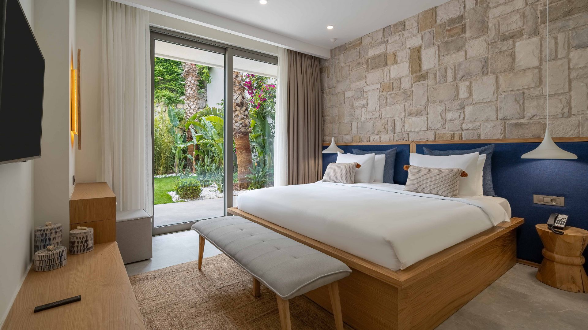 Хотелът се състои от общо 202 стаи, разположени в няколко корпуса. Хотелът разполага със следните видове модерно и комфортно обзаведени стаи: Standard Room Land View (25 m²), Superior Room Sea View (26-30 m²), Serenity Terrace Room (26-30 m²), Family Room Non View Eco (52 m²), Family Room Land View / Sea View (65 m²), Grand Deluxe Room (65 m²), Family Suite (65 m²), Royal Suite (105 m²),