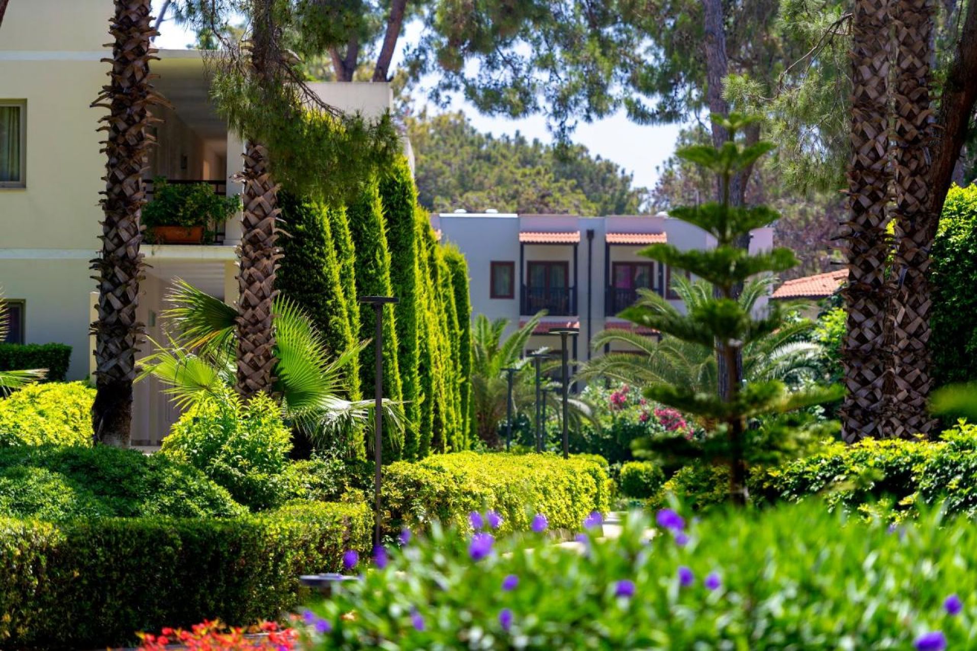 Стаи Garden Block: Standard Room Garden Block (изглед градина, 27-28 м2), Family Land View Garden Blocks (2 отделни спални, 1 баня - 42-43 м2).