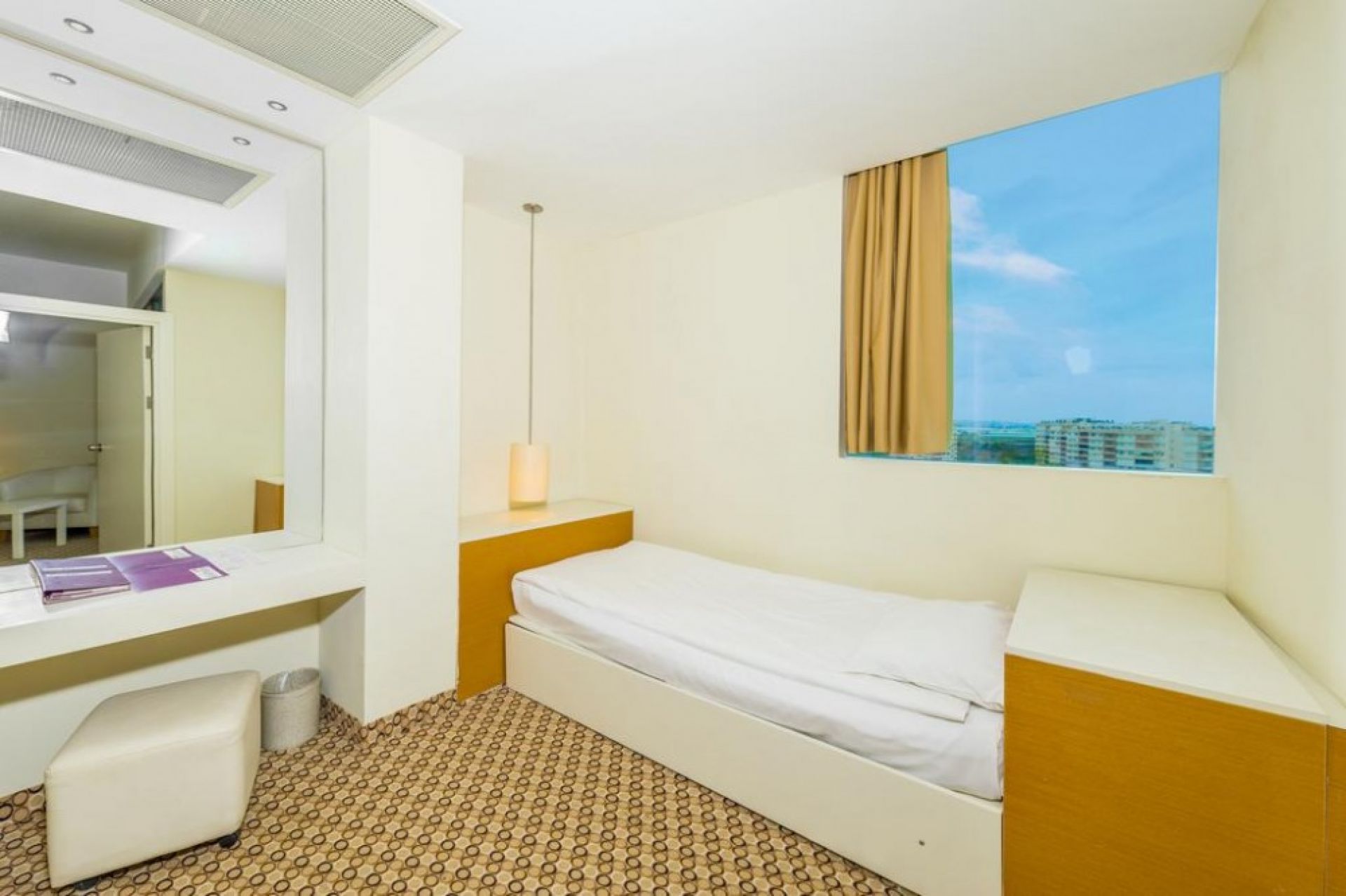 Хотелът разполага с общо 400 стаи, разположени в една 8-етажна сграда Main Building, от които 304 стандартни стаи Standard room (изглед суша или море - 28 м2), 96 Junior Suite Room (2 стаи свързани с врата - 35 м2). Всички стаи са оборудвани с климатик, телевизор, телефон, баня с душ/вана, сешоар, интернет (безплатен), минибар (безплатен), сет за кафе/чай, сейф (безплатен). Почистване на стаите и смяна на кърпи и спално бельо - ежедневно.