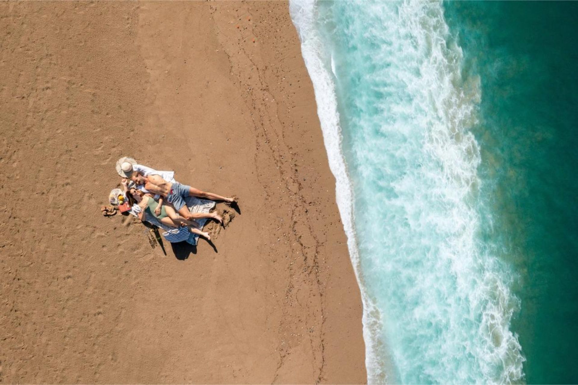 Собствен, пясъчен. Чадъри, шезлонги, матраци и плажни кърпи на плажа и при басейна - безплатно.
