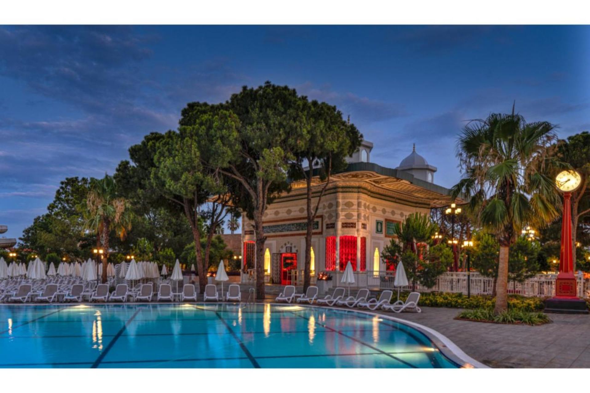 Основен ресторант, 3 а-ла-карт ресторанта (2 турскии и 1 интернационален – срещу заплащане и с предварителна резервация, съгласно концепцията на хотела), снек ресторант, сладкарница, 12 бара, 3 открити и 1 закрит басейн, аквапарк, амфитеатър със специални изпълнения (2 пъти седмично), СПА център, дискотека, магазини, 5 конферентни зали, паркинг.